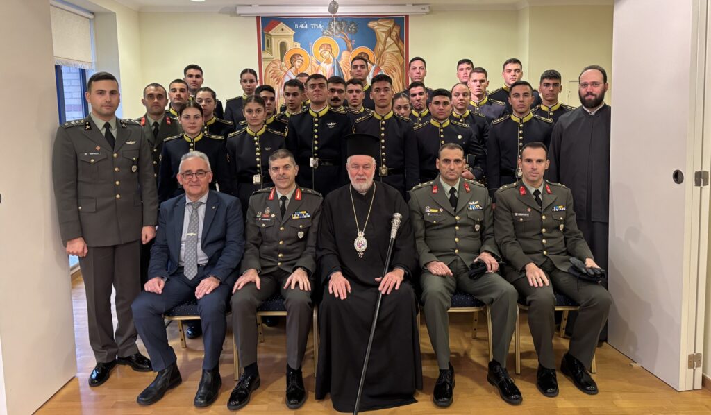 Σήμερα, Τετάρτη 3 Δεκεμβρίου 2025, ο Σεβασμιώτατος Μητροπολίτης Βελγίου, Έξαρχος Κάτω Χωρών και Λουξεμβούργου κ. Αθηναγόρας υποδέχθηκε με ιδιαίτερη χαρά στο Ορθόδοξο Κέντρο της Ιεράς Μητροπόλεως, στην πλατεία Ambiorix στο κέντρο των Βρυξελλών, αντιπροσωπεία της Στρατιωτικής Σχολής Ευελπίδων.