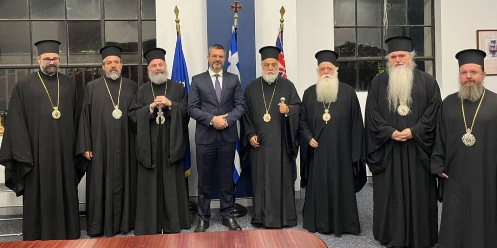 Οι Αρχιερείς ενημερώθηκαν από τον κ. Σκέμπερη για την αποστολή του Ελληνικού Προξενείου και τη δράση του υπέρ των αναγκών της Ελληνικής Ομογένειας, συζήτησαν για την ανάγκη διατήρησης και ενίσχυσης της ελληνικής γλώσσας και της ελληνορθόδοξης ταυτότητας των Ομογενών, ενώ εξέφρασαν την ικανοποίησή τους για τη στενή και αγαστή συνεργασία που αναπτύσσεται μεταξύ της Προξενικής Αρχής και της Ιεράς Αρχιεπισκοπής Αυστραλίας.