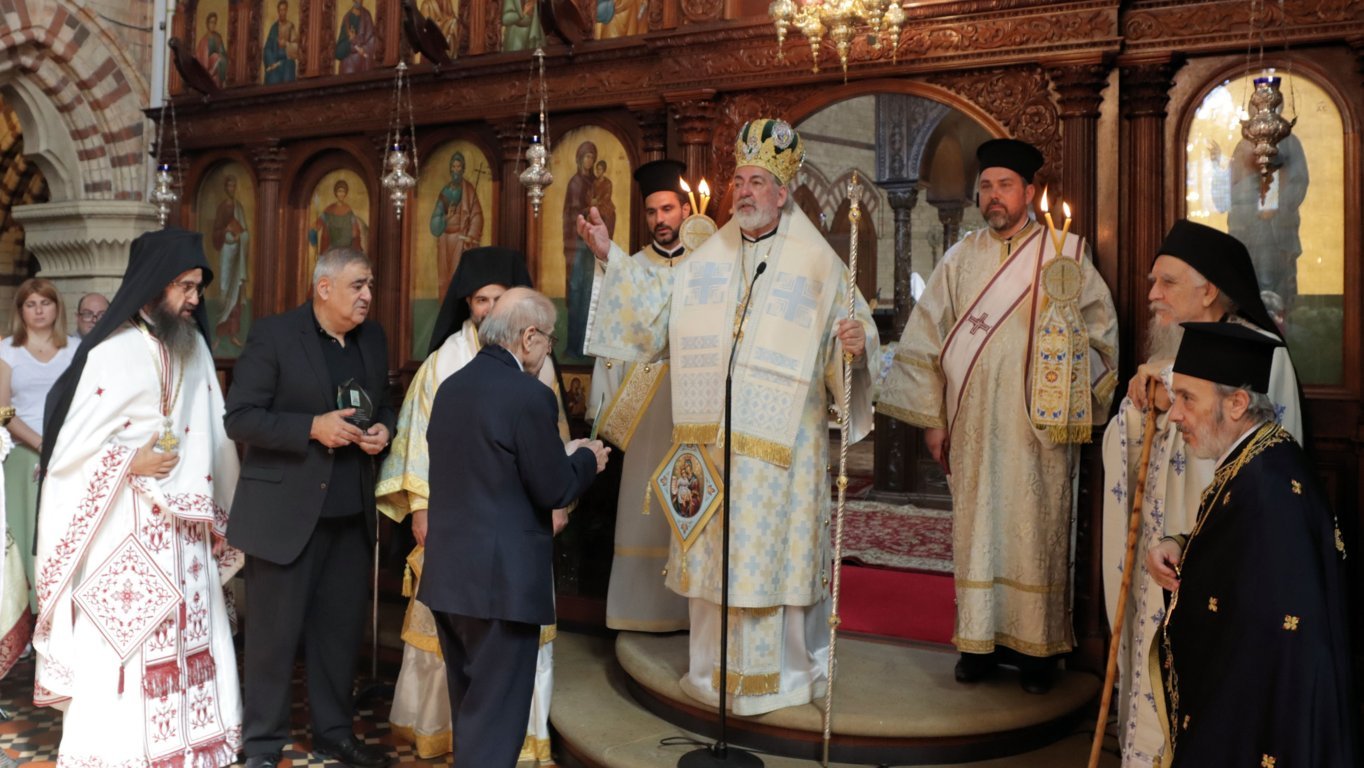 Στο τέλος της Θείας Λειτουργίας, ο Σεβασμιώτατος απένειμε τιμητικές διακρίσεις στον Άρχοντα κ. Χριστόφορο (Σταθάκη) Παπαχριστοφόρου και στον κ. Δημήτριο Μάρκου, σε αναγνώριση της πολυετούς και ακάματης διακονίας, της ταπείνωσης και της αγάπης τους προς την Εκκλησία. Το παράδειγμά τους αποτελεί έμπνευση για ολόκληρη την κοινότητα.