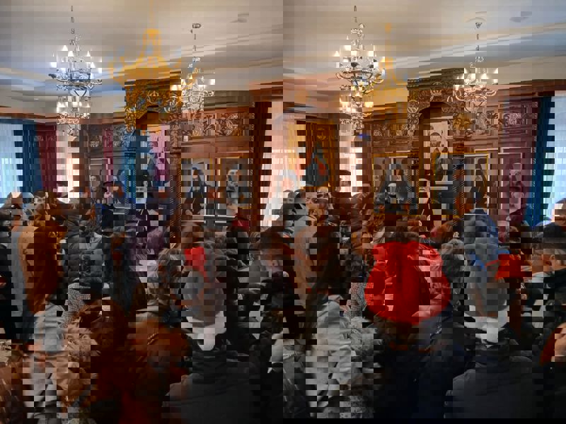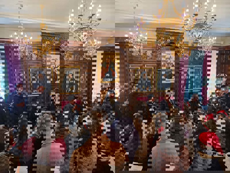 Ο Σεβασμιώτατος Μητροπολίτης Καλαβρύτων και Αιγιαλείας κ. Ιερώνυμος υποδέχθηκε εγκαρδίως και ευχαρίστησε θερμά όλους τους προσελθόντες για την αγάπη τους, αντευχόμενος το σωτήριο Φως της Γεννήσεως του Χριστού να φωτίζει τη ζωή κάθε χριστιανού, να ενισχύει την πίστη, να καλλιεργεί την ενότητα και να χαρίζει ειρήνη, ελπίδα και πνευματική προκοπή στην τοπική μας Εκκλησία.