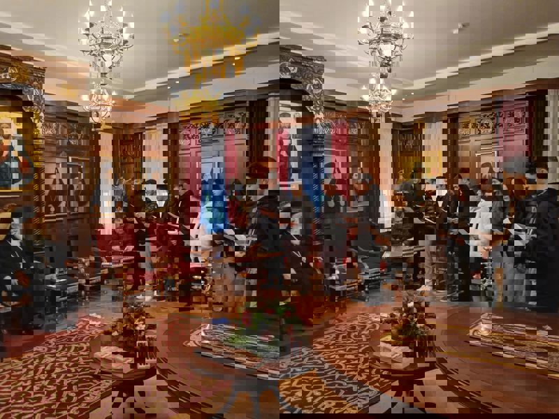 Ενόψει της μεγάλης εορτής της κατά σάρκα Γεννήσεως του Κυρίου ημών Ιησού Χριστού, ο κλήρος και ο λαός της Ιεράς Μητροπόλεως Καλαβρύτων και Αιγιαλείας προσήλθαν με αισθήματα υιικής αγάπης και σεβασμού στο Επισκοπείο της Ιεράς Μητροπόλεως στο Αίγιο και στην αίθουσα του Θρόνου, προκειμένου να εκφράσουν τις εόρτιες ευχές τους προς τον Σεβασμιώτατο Μητροπολίτη Καλαβρύτων και Αιγιαλείας κ. Ιερώνυμο.