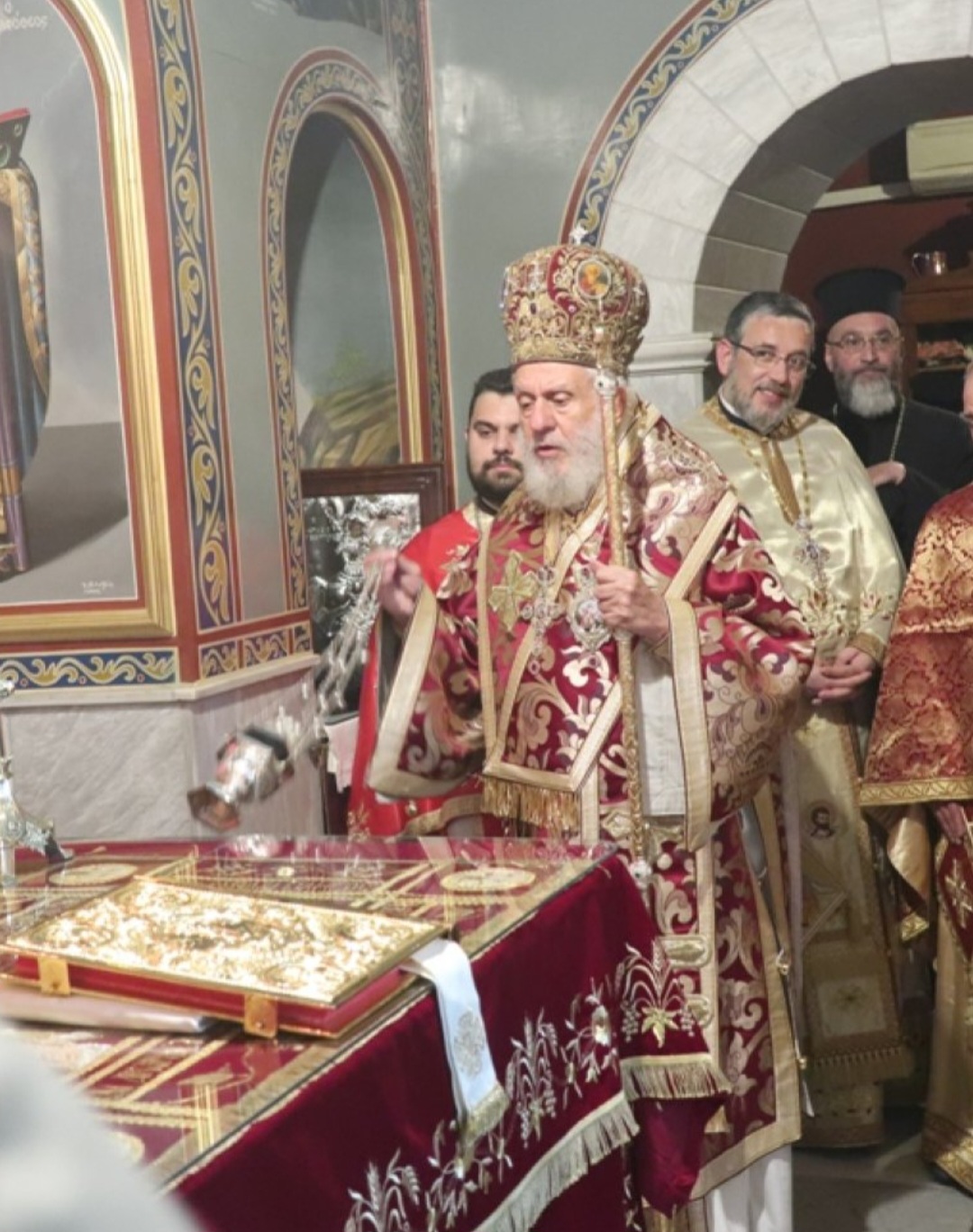 Στην σύντομη Εόρτιο Προσλαλιά του, ο Σεβασμιώτατος κ. Δωρόθεος Β’ ανεφέρθη στον βίο και την άθληση του Αγίου Γεωργίου, ο οποίος γενναίος στρατιώτης του Χριστού, παραμένοντας πιστός σ’ Αυτόν μέχρι θανάτου μαρτυρικού και καταλείποντας υπομνήματα τρoπαιοφόρου γενναιοφροσύνης, στην νικηφόρα αντιμετώπιση των προβλημάτων και δυσκολιών της καθ’ ημέραν ζωής.