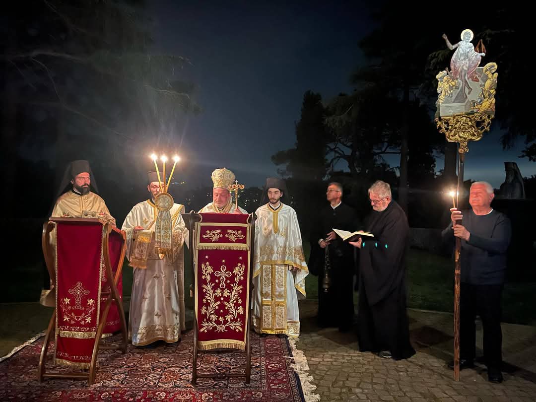 Σε πανηγυρικό κλίμα τελέστηκε την νύκτα του Μεγάλου Σαββάτου, 19 Απριλίου 2025, η Παννυχίδα της Αναστάσεως του Σωτήρος Χριστού στο ναΰδριο της Θεολογικής Σχολής, προεξάρχοντος του Καθηγουμένου, Θεοφιλεστάτου Επισκόπου Αραβισσού κ. Κασσιανού, ο οποίος μετά το πέρας της Θείας Λειτουργίας της Αναστάσεως εξέφρασε τις θερμές ευχές του προς τους εκκλησιασθέντες πιστούς από τα Πριγκηπόννησα και την Ελλάδα, και τους διένειμε τα ειθισμένα πασχαλινά αυγά.