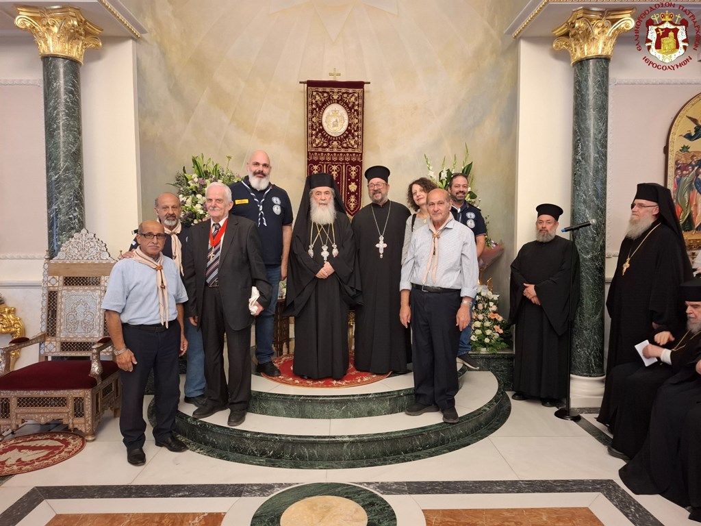 Μεταξύ ἄλλων δῶρα προσέφεραν ἐν χαρᾷ πρός τόν Μακαριώτατον τό Σῶμα τῶν Προσκόπων τῆς Ἰόππης καί ἡ Σχολή τοῦ Ἁγίου Δημητρίου τοῦ Πατριαρχείου.