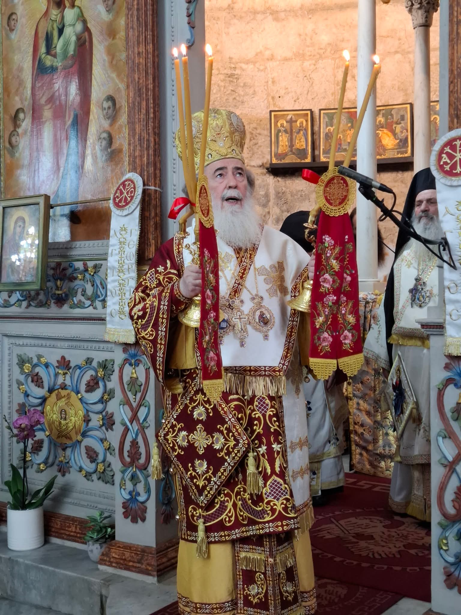 Η Θεία Λειτουργία πραγματοποιήθηκε προεξάρχοντος του Πατριάρχου Ιεροσολύμων και πάσης Παλαιστίνης κ. Θεοφίλου του Γ’.