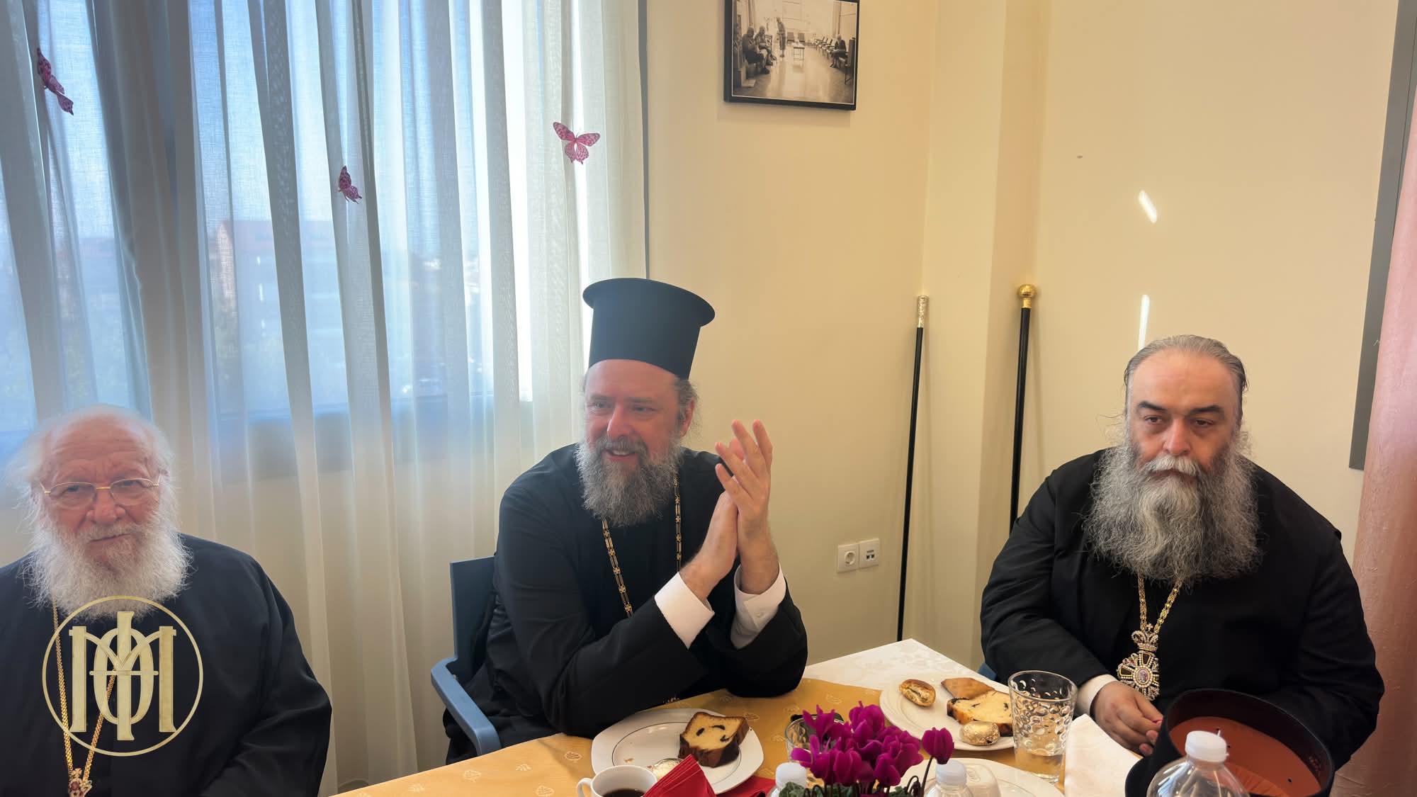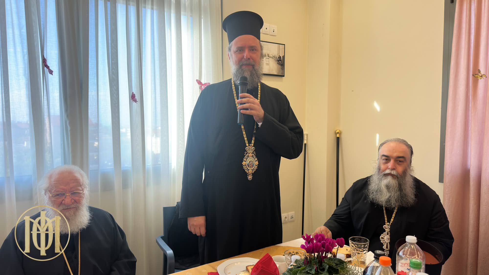 Μετά το τέλος της Αρχιερατικής Θείας Λειτουργίας ο Ποιμενάρχης μας και οι λοιποί κληρικοί και λαϊκοί προσκεκλημένοι, συνοδευόμενοι από τον Διευθυντή και τα μέλη του Διοικητικού Συμβουλίου, κατευθύνθηκαν στην τραπεζαρία του Ιδρύματος, όπου και πραγματοποιήθηκε μια όμορφη οικογενειακή γιορτή με ποιήματα και τραγούδια, την οποία παρουσίασαν με ζωντάνια και χαμόγελα οι γέροντες.