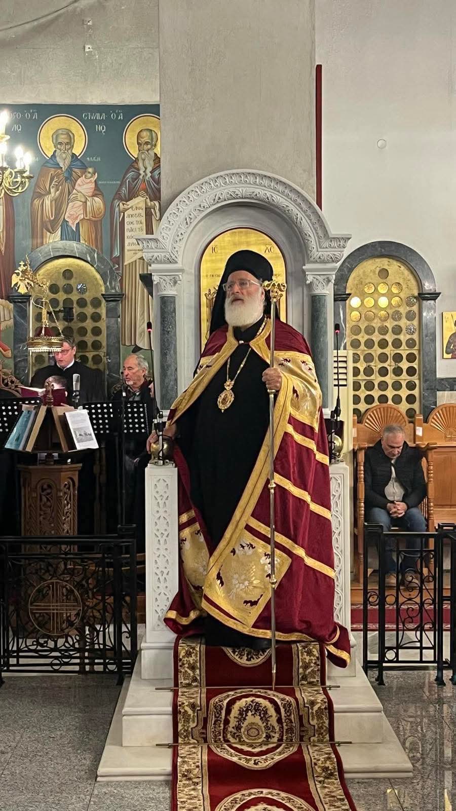 Από πολύ νωρίς πλήθος κόσμου – άνθρωποι ευλαβείς που ήρθαν να τιμήσουν τον μεγάλο Άγιο της Εκκλησίας μας – πλημμύρισε τον Ιερό Ναό. Μεταξύ του εκκλησιάσματος παρέστησαν βουλευτές, εκπρόσωποι της τοπικής αυτοδιοίκησης και εκπρόσωποι λοιπών φορέων της πόλης μας.