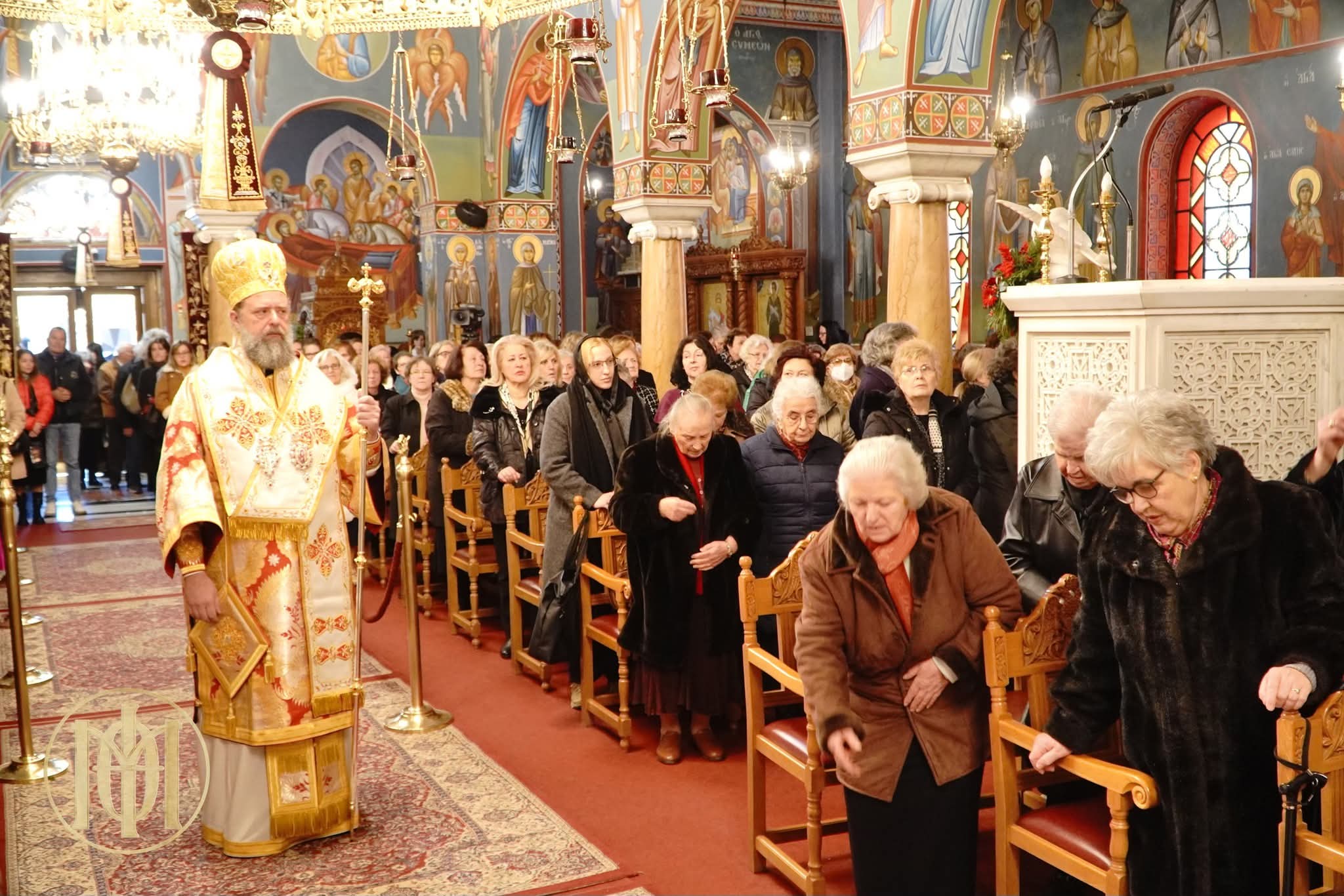 Στον αύλειο χώρο του Ιερού Ναού η γυναικεία χορωδία της Ενορίας υπό τη διεύθυνση του χοράρχη κ. Ευαγγέλου Ασημίνα παρουσίασε ο Σεβασμιώτατος  και στους πιστούς που βρέθηκαν εκεί χριστουγεννιάτικα τραγούδια και κάλαντα του Αγίου Δωδεκαημέρου.