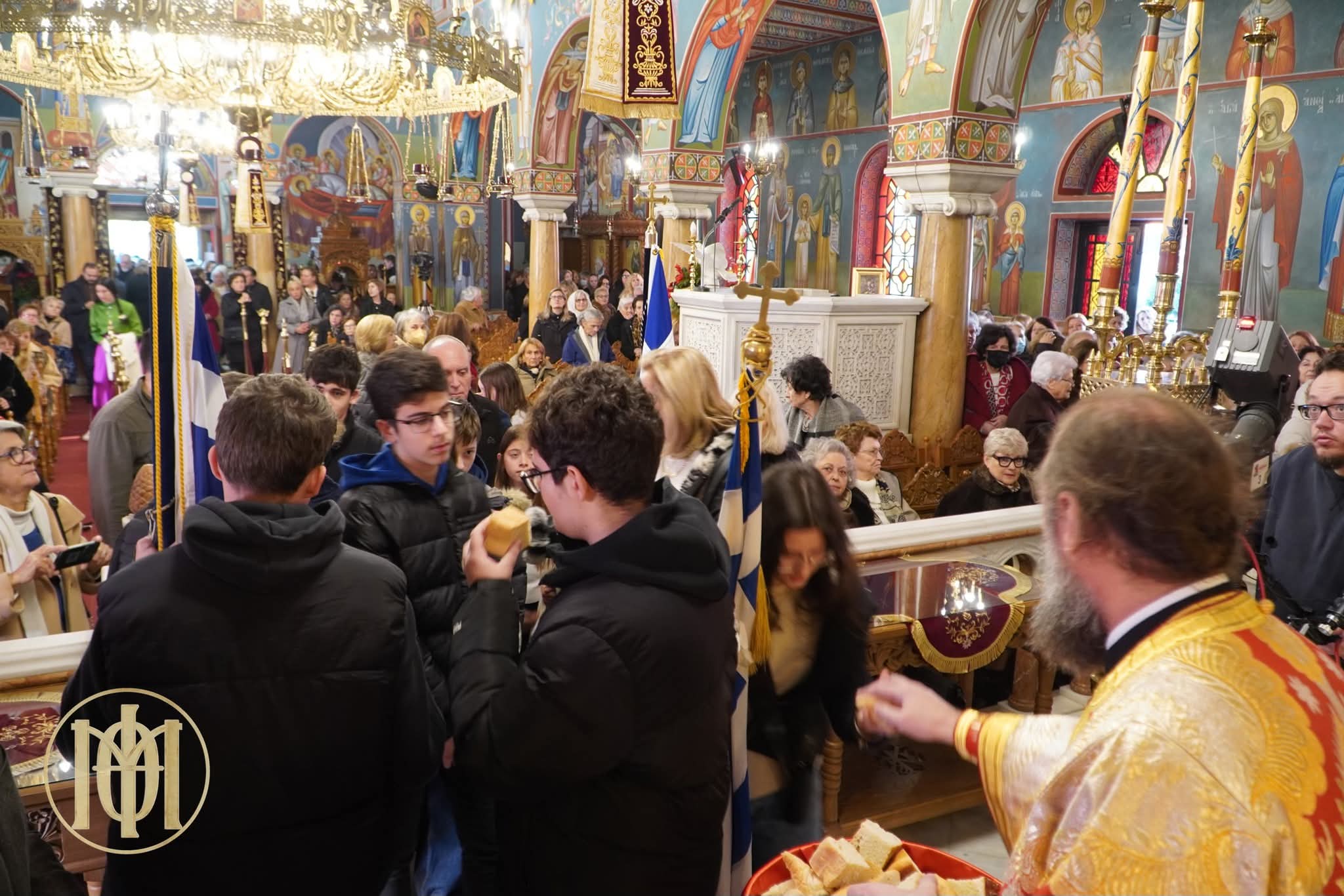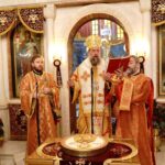 Στο Ιερό Βήμα παρέστησαν συμπροσευχόμενοι οι Σεβασμιώτατοι Μητροπολίτες Βρυούλων κ. Παντελεήμων και Βελεστίνου κ. Δαμασκηνός.