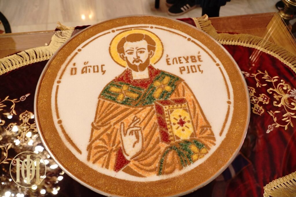 Προ της Απολύσεως ο οικείος Επίσκοπός ευλόγησε το κόλλυβο του Αγίου Ελευθερίου, το οποίο ετοίμασαν ευλαβείς ενορίτες, και ακολούθως ευχαρίστησε τον Πρόεδρο του Εκκλησιαστικού Συμβουλίου, π. Χριστόδουλο Παρτίδη, και τον συνεφημέριό του, π. Δημήτριο Τάνο, οι οποίοι, συνεργαζόμενοι με τα μέλη των Εκκλησιαστικών Επιτροπών, τους εργαζομένους και τους εθελοντές, προετοίμασαν άριστα τη φετινή Πανήγυρη.