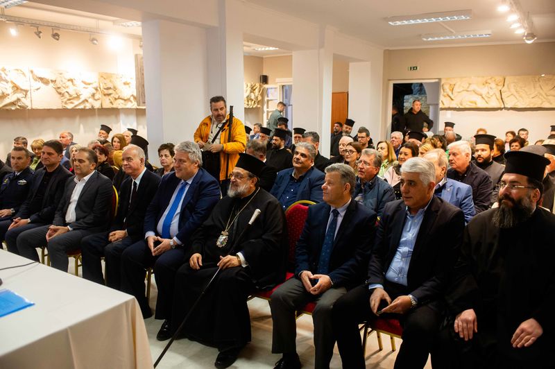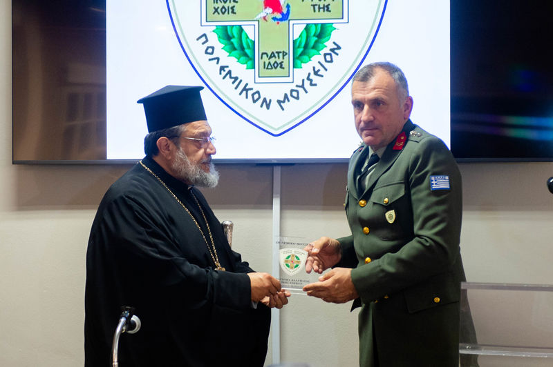 Μετά το πέρας της ομιλίας ο Διευθυντής του Μουσείου επέδωσε στον Σεβασμιώτατο τιμητική πλακέτα για την προσφορά του στην Εκκλησία και την Πατρίδα.