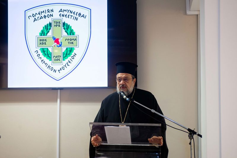Η εκδήλωση ξεκίνησε με την παρουσίαση του ομιλητή από τον Διευθυντή του Πολεμικού Μουσείου Καλαμάτας Λοχαγό κ. Γεώργιο Κατσιμαγκλή ο οποίος εξέφρασε την ευγνωμοσύνη του Διοικητικού Συμβουλίου του Μουσείου, τόσο για την αποδοχή της πρόσκλησης του Σεβασμιωτάτου, όσο και για την παραχώρηση του κτιρίου του Πολεμικού Μουσείου Καλαμάτας από την Ιερά Μητρόπολη Μεσσηνίας.