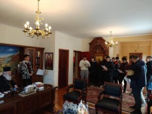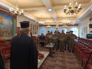 Το πρωί της Παραμονής της Πρωτοχρονιάς Τρίτη 31 Δεκεμβρίου 2024, στο Ανθίμειο, ο Μητροπολίτης Αλεξανδρουπόλεως κ. Άνθιμος δέχτηκε συλλόγους, στρατιωτικές μπάντες και παιδιά για να ακούσει τα καθιερωμένα κάλαντα της Πρωτοχρονιάς. Ο Μητροπολίτης μας ευχήθηκε σε όλους χρόνια πολλά και ευλογημένα και ο Χριστός να ευλογεί το νέο έτος δίνοντας στους ανθρώπους υγεία και χαρά. Ως ευλογία έδωσε το ημερολόγιο της Μητροπόλεώς μας για το 2025.