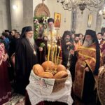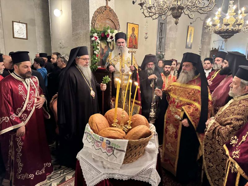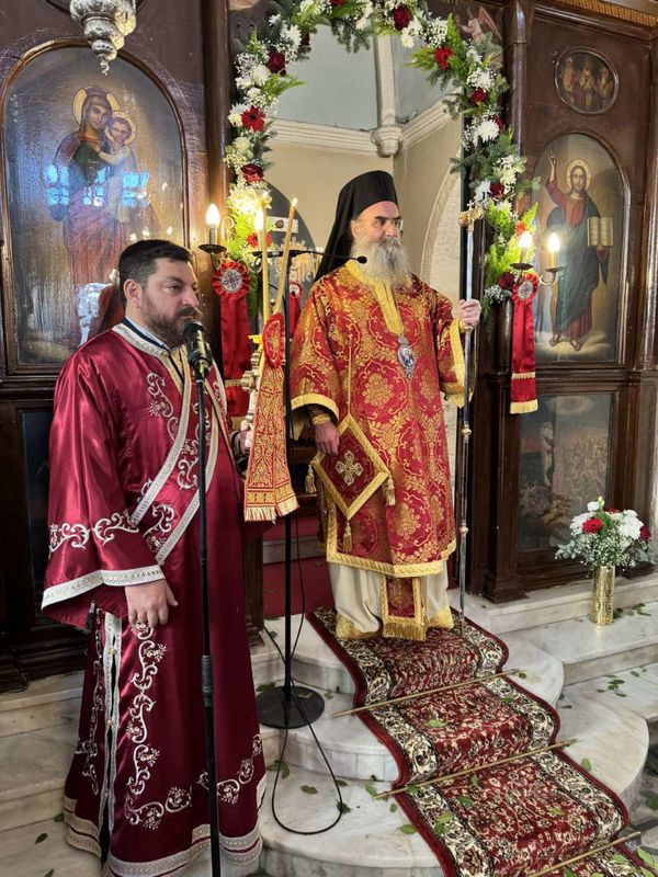 Το πρωί της κυριωνύμου ημέρας, ο Σεβ. Μητροπολίτης Λαρίσης και Τυρνάβου κ. Ιερώνυμος χοροστάτησε κατά τον Όρθρο και στη συνέχεια προέστη της Τρισαρχιερατικής Θείας Λειτουργίας, κηρύσσοντας γλαφυρά τον Θείο λόγο εκ του αποστολικού αναγνώσματος και αναφερόμενος στους ιστορικούς δεσμούς της Κρήτης και της Λάρισας, με αναφορά και στους ήρωες της 5ης Μεραρχίας Κρητών.
