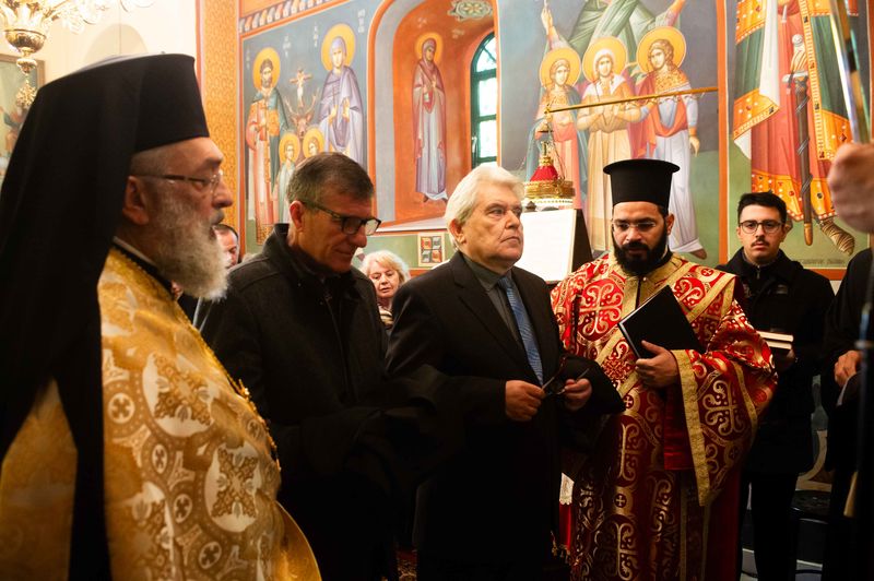Περατωθείσης της Θείας Λειτουργίας ο Σεβασμιώτατος αναφέρθηκε στο γεγονός της συμπληρώσεως διακοσίων ετών από την ηρωική θυσία του Παπαφλέσσα στο Μανιάκι και εξήγγειλε την διοργάνωση επετειακών εκδηλώσεων με αφορμή αυτό το γεγονός. Επιπλέον συνεχάρη τον π. Χριστοφόρο για την απρόσκοπτη και συνεχή λειτουργία της Μονής ως και για την δημιουργία Παρεκκλησίου προς τιμήν του Αγίου Νεκταρίου αλλά και του Μουσείου – Πινακοθήκης, με έργα προσφερθέντα από τον φιλόπατρη κ. Δημήτριο Καραπουλουτίδη εκ Θεσσαλονίκης, που θα εγκαινιασθεί κατά το νέο έτος. Τέλος ευχαρίστησε όλους του εθελοντές και τις εθελόντριες που προσφέρουν τον εαυτόν τους στη διακονία της Μονής και τον Βουλευτή Μεσσηνίας κ. Μίλτο Χρυσομάλλη για την προσευχητική παρουσία του.