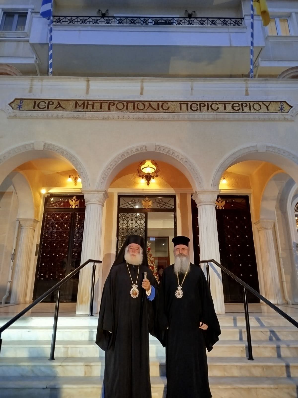 Με την ίδια ευκαιρία ο Πατριάρχης Αλεξανδρείας επισκέφθηκε το Επισκοπείο της Ι.Μ. Περιστερίου και συναντήθηκε με τον Σεβ. Ποιμενάρχη μας κ. Γρηγόριο, ο οποίος τον ξενάγησε μαζί με τον πρωτοσύγκελλο μας Αρχιμ. Άγγελο Ανθόπουλο στους χώρους του Επισκοπείου ενημερώνοντάς τον για το ποιμαντικό έργο της Ι.Μ. Περιστερίου. Κατά την διάρκεια της επισκέψεως του Πατριάρχη αντάλλαξαν απόψεις μεταξύ τους για εκπαιδευτικά θέματα που σχετίζονται με την Θεολογική και Ιερατική εκπαίδευση στους χώρους του Πατριαρχείου και της Αφρικανικής Ηπείρου, καθώς και για την εξέλιξη του Θεολογικού Διαλόγου με τους Λουθηρανούς, στον οποίον μετέχει και το παλαίφατο Πατριαρχείο, δεδομένου ότι ο Ποιμενάρχης μας κ. Γρηγόριος τυγχάνει επίσημος εκπρόσωπος της Ιεράς Συνόδου της Εκκλησίας της Ελλάδος στο Διάλογο Ορθοδόξων Λουθηρανών Θεολόγων.