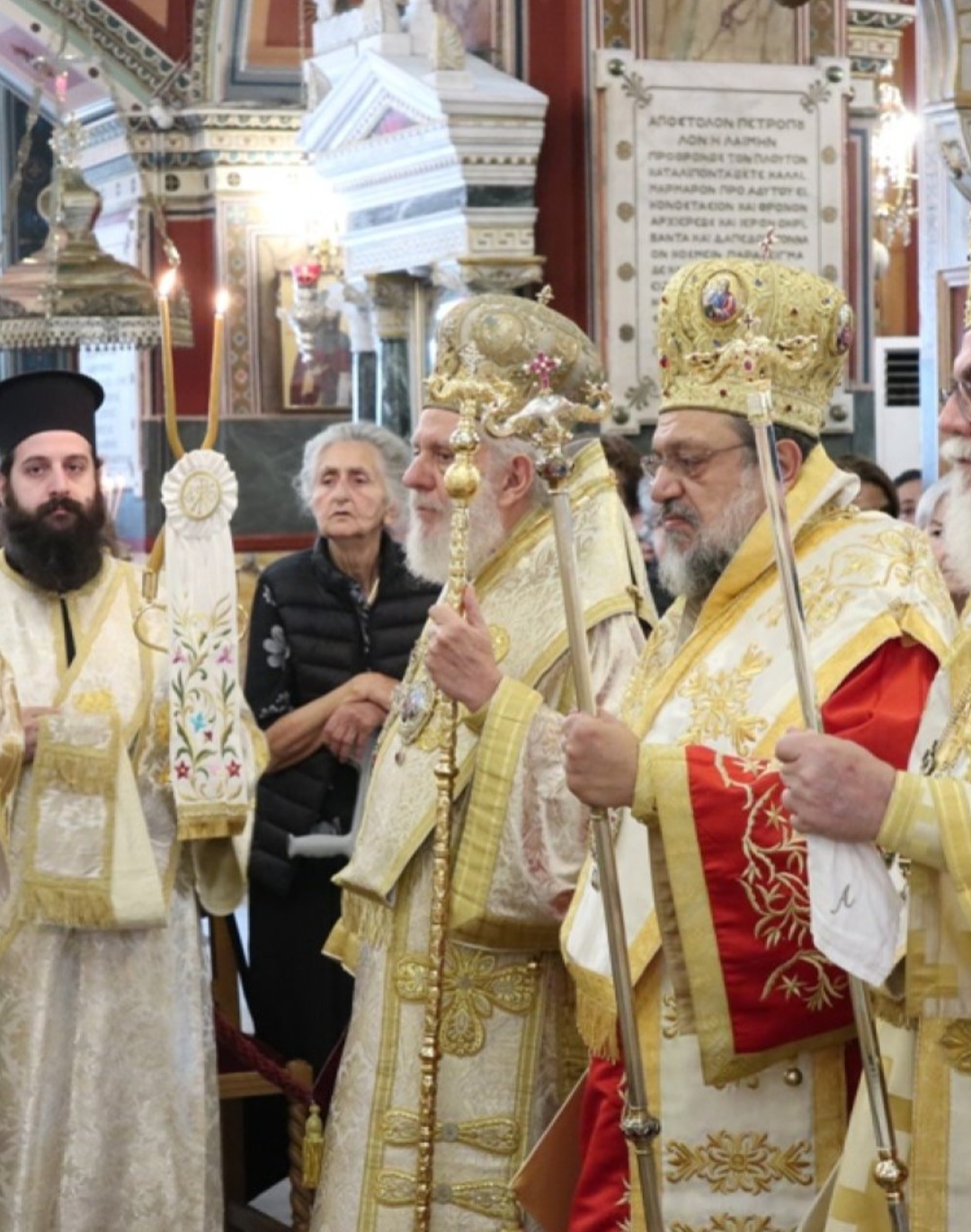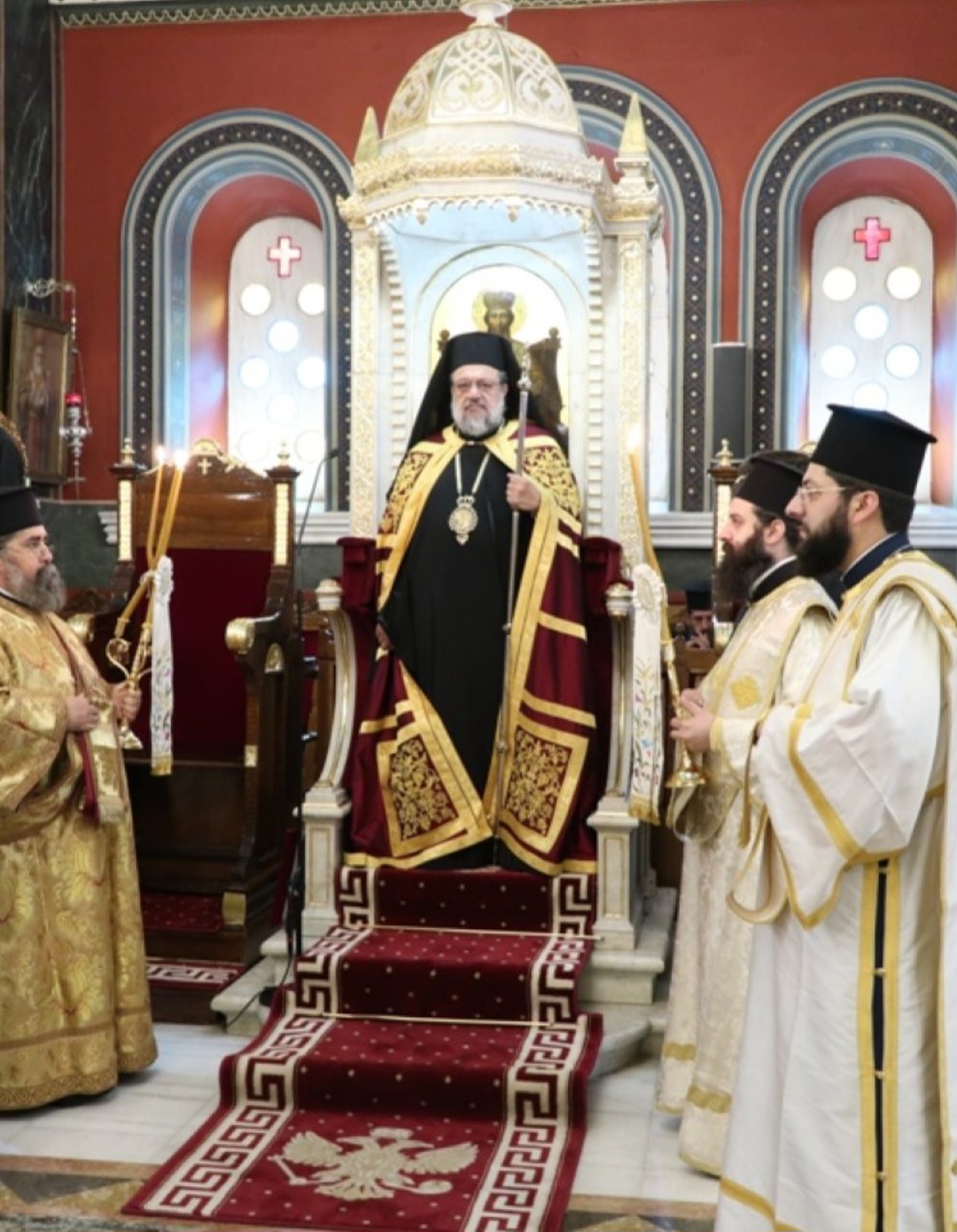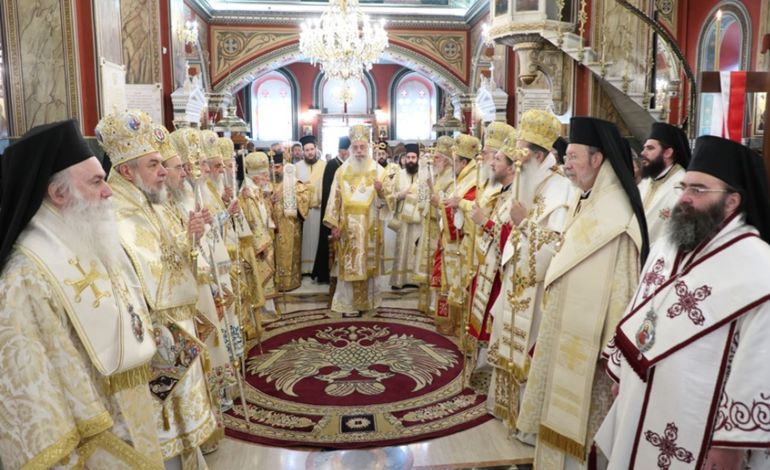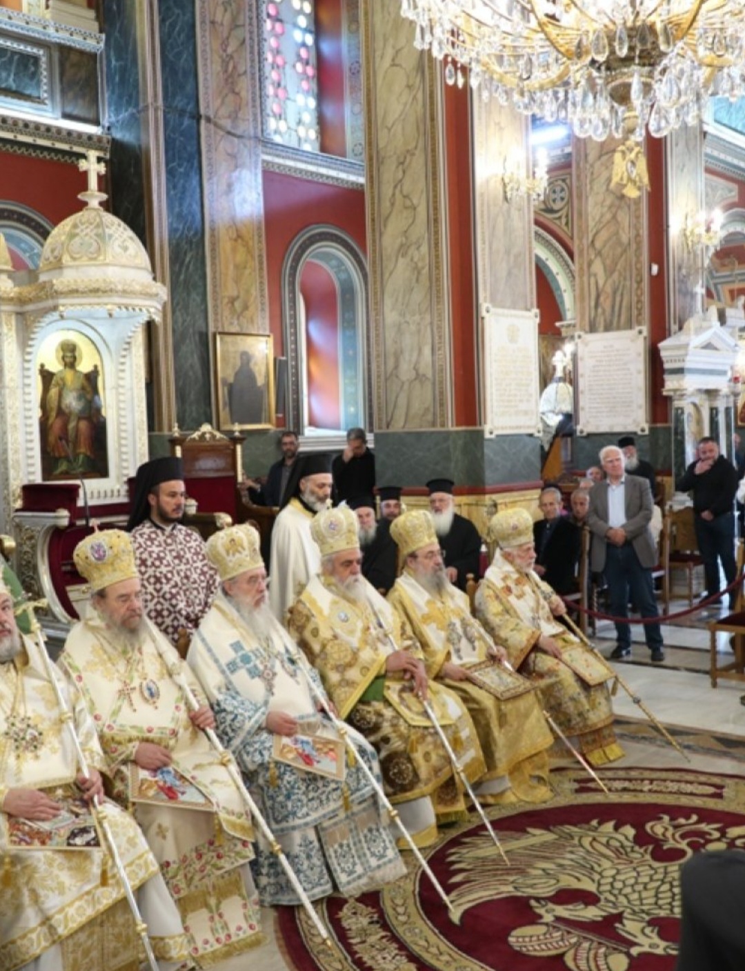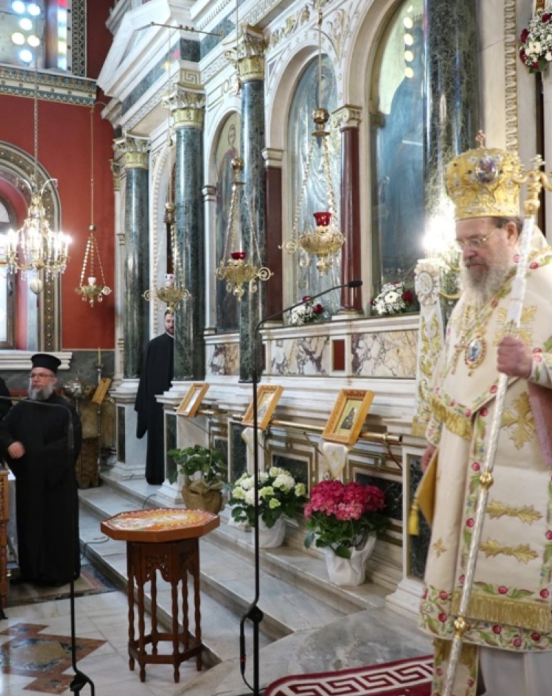 Μετά τοι πέρας της Θείας Λειτουργίας, ο Σεβασμιώτατος κ. Επιφάνιος ευχαρίστησε θερμά τους Αρχιερείς, τους Κληρικούς, τα Μοναχικά Τάγματα, τους Ιεροψάλτες και τους Επιτρόπους του Ναού και εδέχθη τις ευχές των Αρχών και του πιστού λαού, ο οποίος είχε κατακλύσει κυριολεκτικά το Ναό.