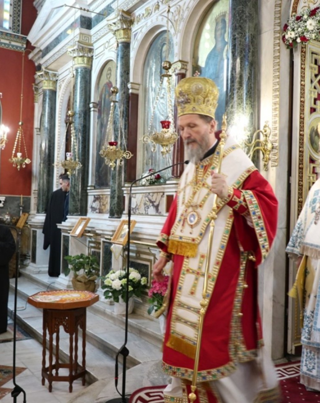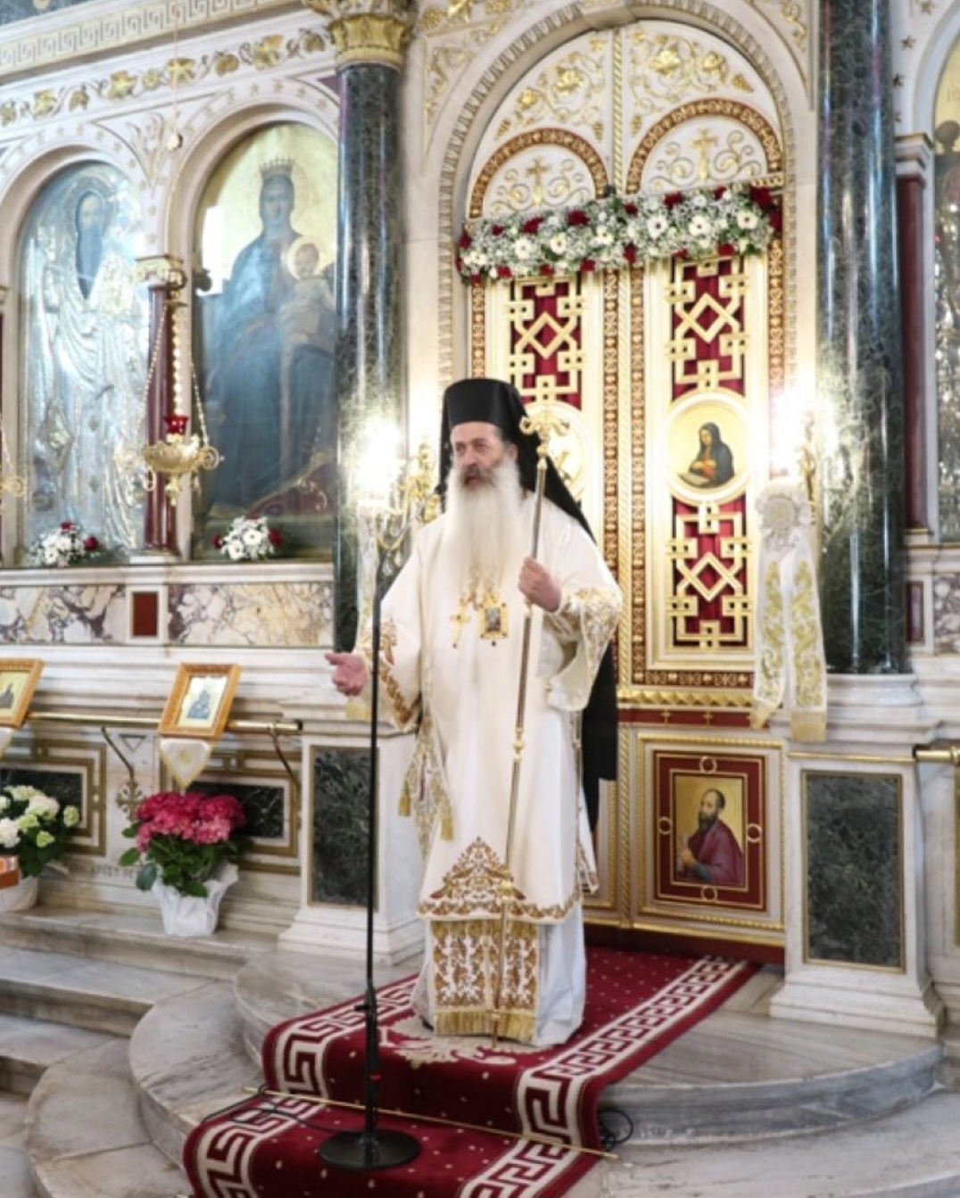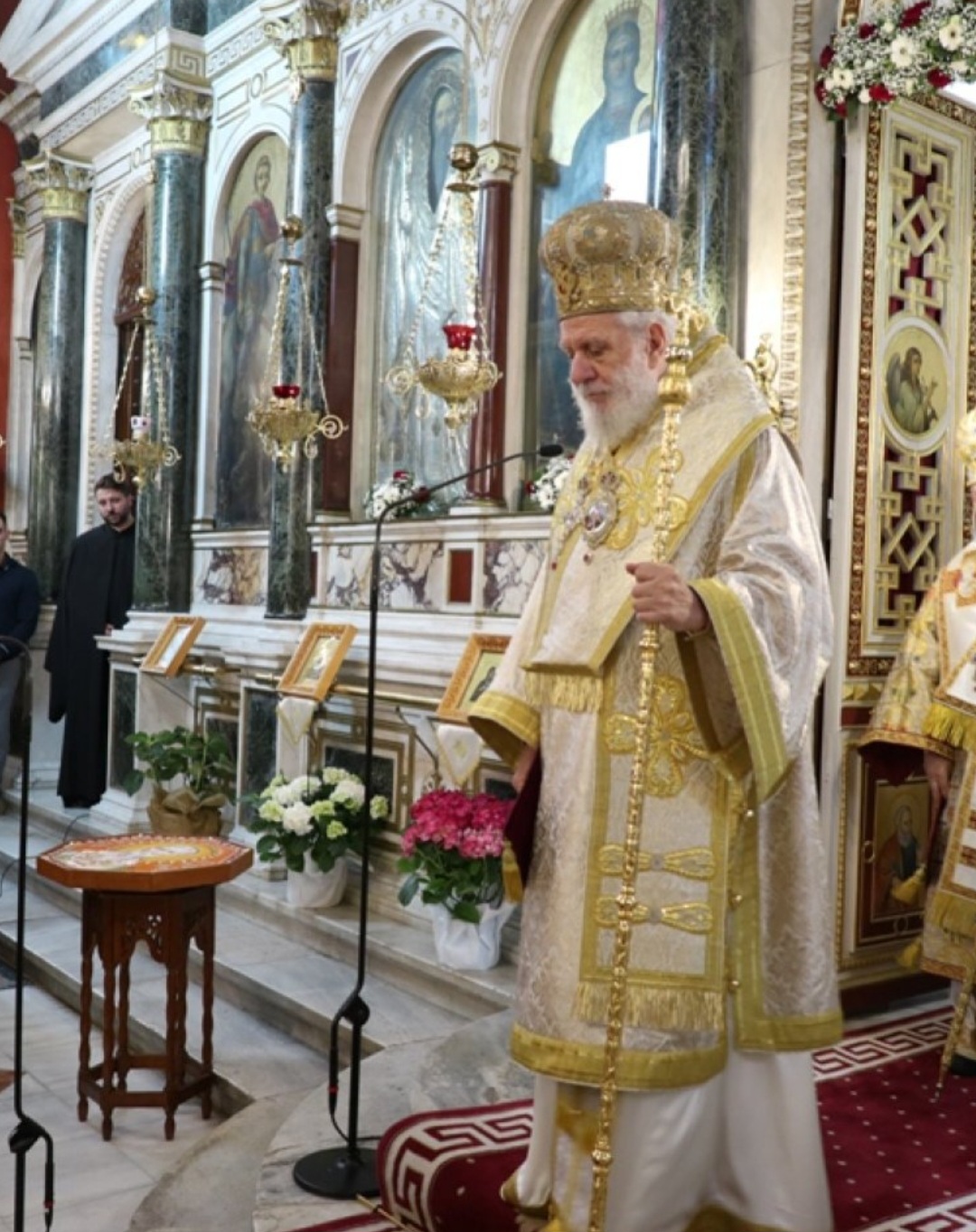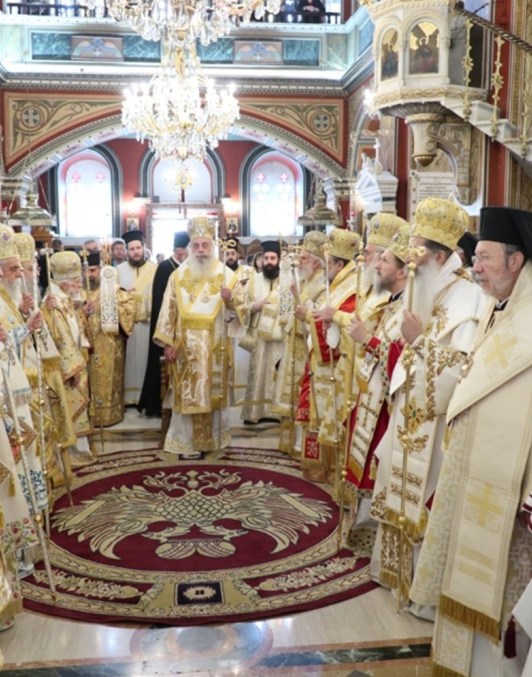 Μετά τοι πέρας της Θείας Λειτουργίας, ο Σεβασμιώτατος κ. Επιφάνιος ευχαρίστησε θερμά τους Αρχιερείς, τους Κληρικούς, τα Μοναχικά Τάγματα, τους Ιεροψάλτες και τους Επιτρόπους του Ναού και εδέχθη τις ευχές των Αρχών και του πιστού λαού, ο οποίος είχε κατακλύσει κυριολεκτικά το Ναό.