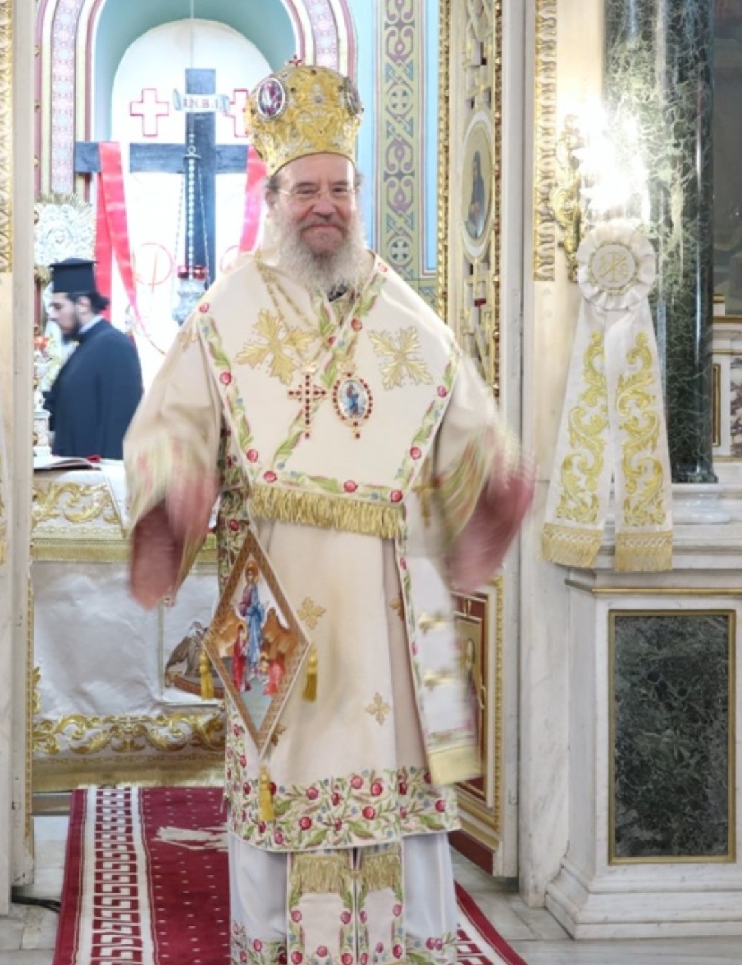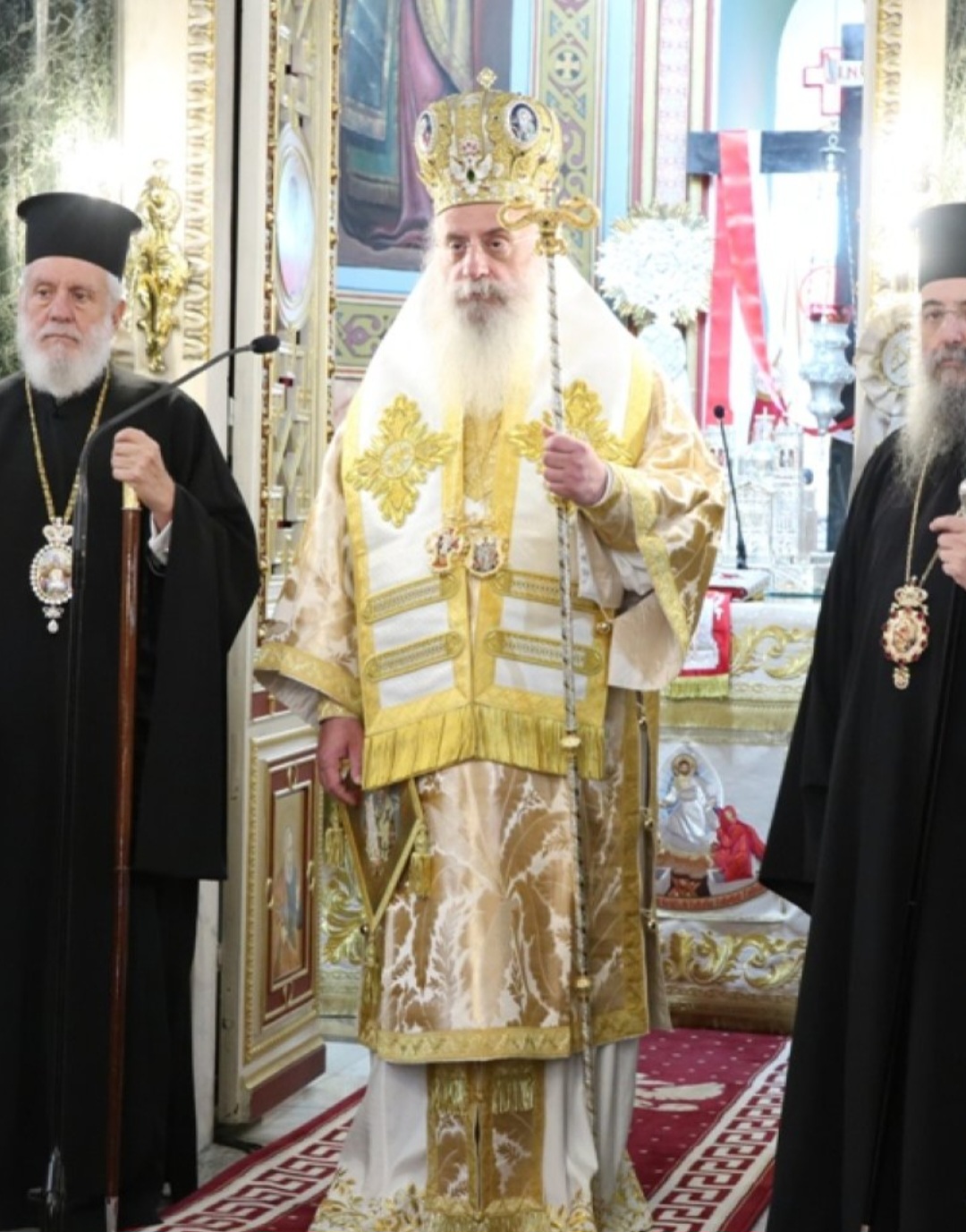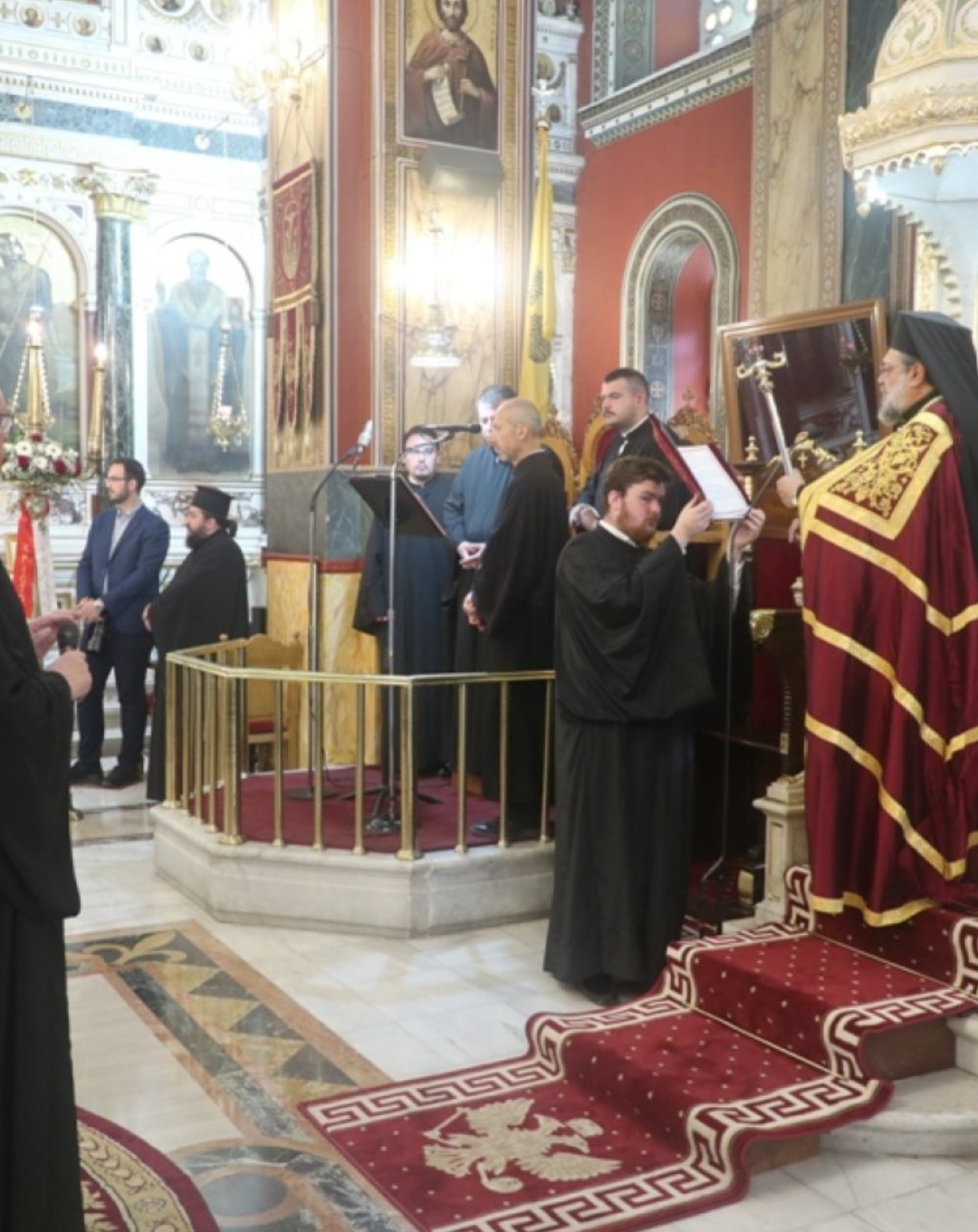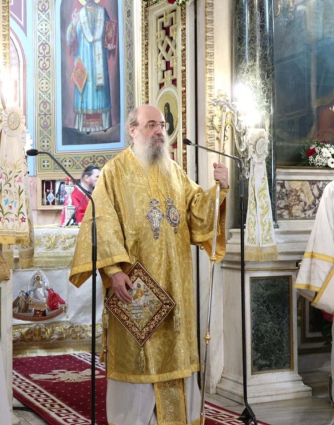 Μετά τοι πέρας της Θείας Λειτουργίας, ο Σεβασμιώτατος κ. Επιφάνιος ευχαρίστησε θερμά τους Αρχιερείς, τους Κληρικούς, τα Μοναχικά Τάγματα, τους Ιεροψάλτες και τους Επιτρόπους του Ναού και εδέχθη τις ευχές των Αρχών και του πιστού λαού, ο οποίος είχε κατακλύσει κυριολεκτικά το Ναό.