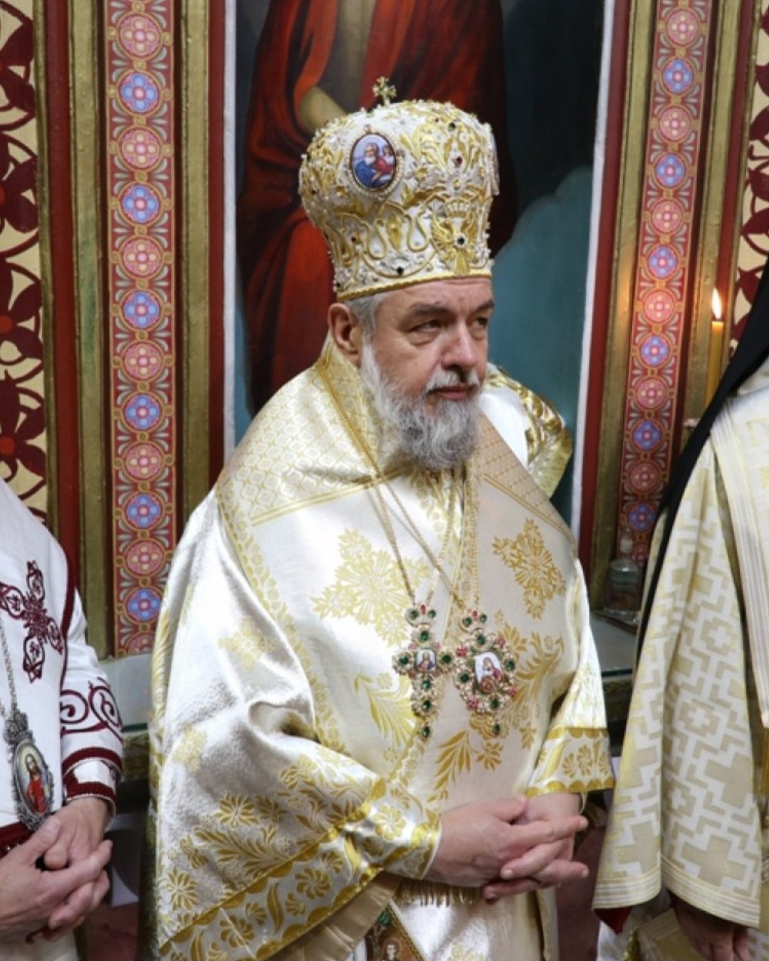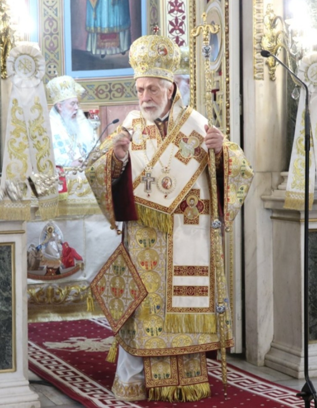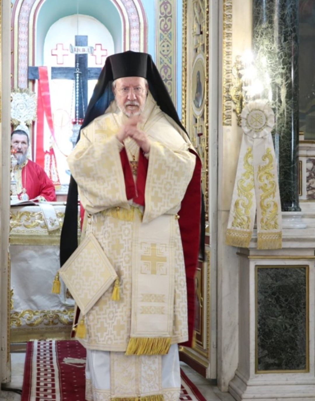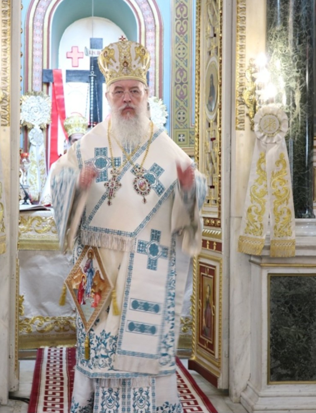 Μετά τοι πέρας της Θείας Λειτουργίας, ο Σεβασμιώτατος κ. Επιφάνιος ευχαρίστησε θερμά τους Αρχιερείς, τους Κληρικούς, τα Μοναχικά Τάγματα, τους Ιεροψάλτες και τους Επιτρόπους του Ναού και εδέχθη τις ευχές των Αρχών και του πιστού λαού, ο οποίος είχε κατακλύσει κυριολεκτικά το Ναό.