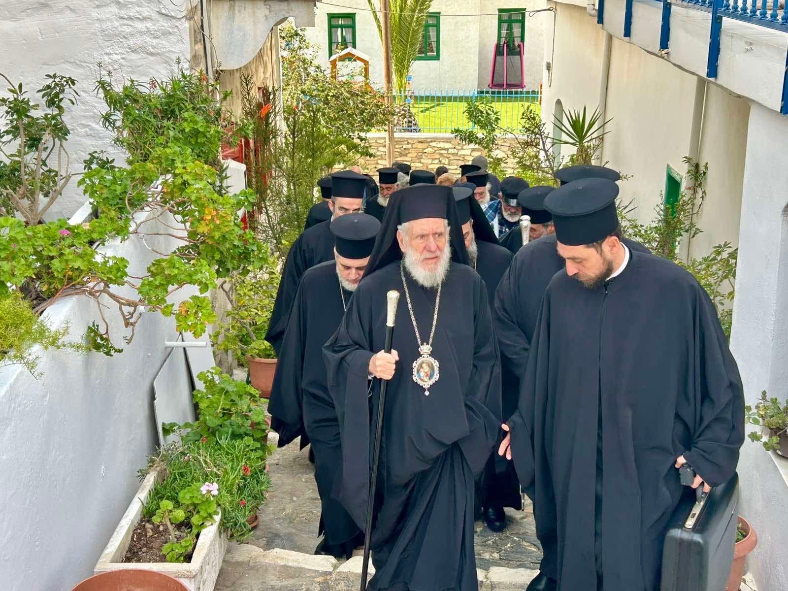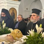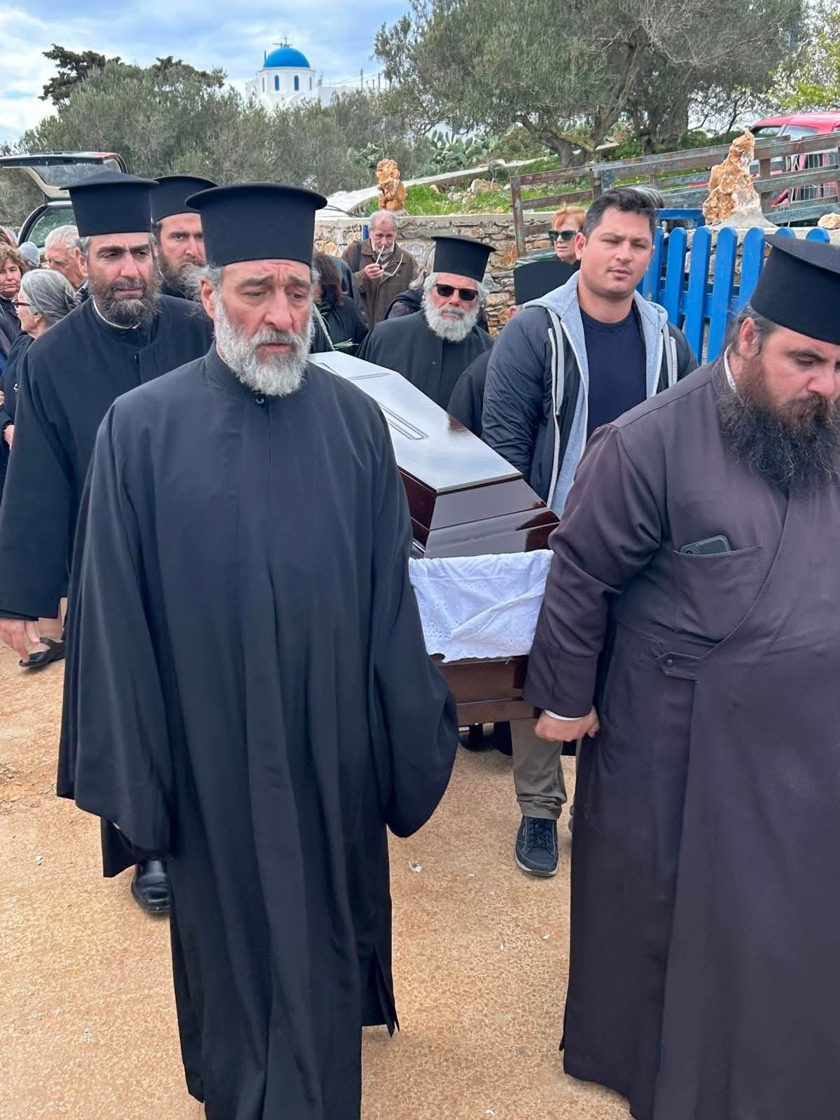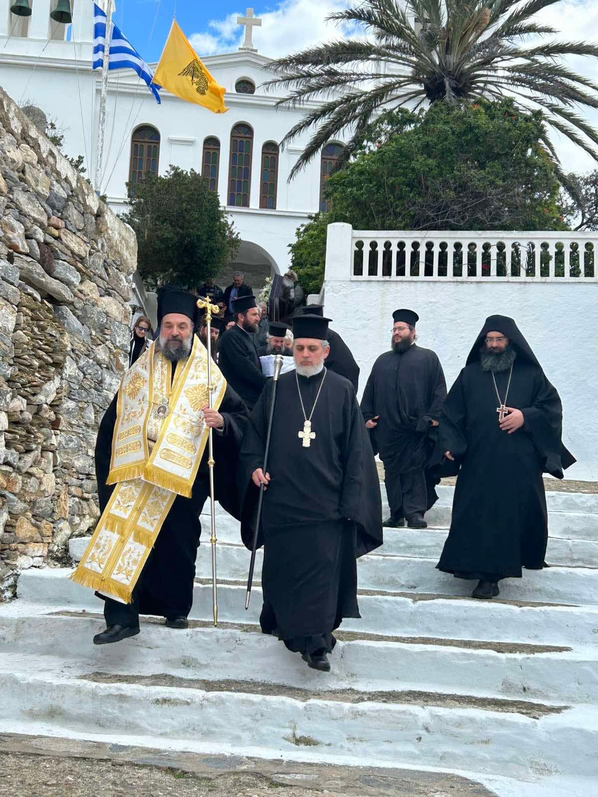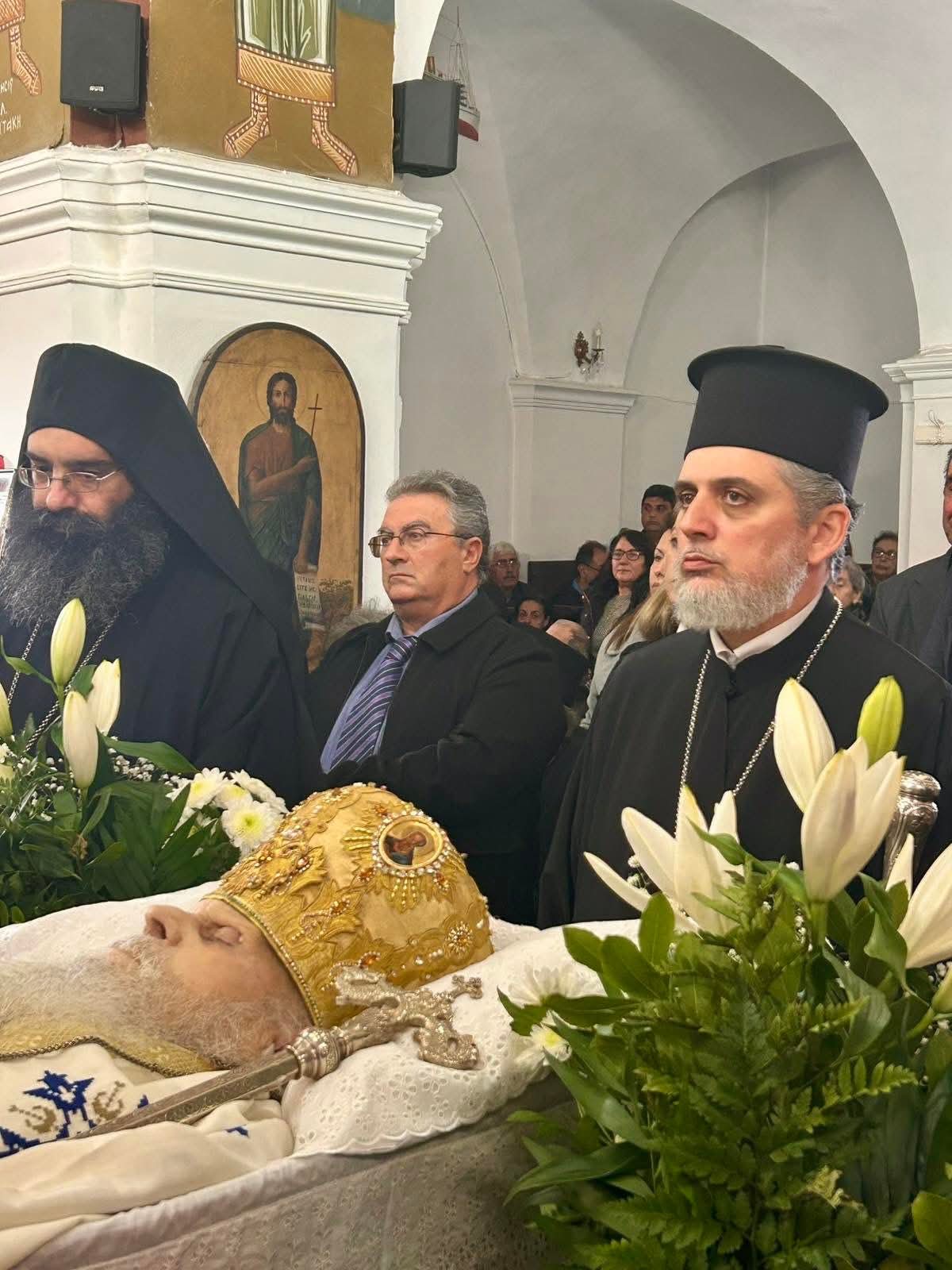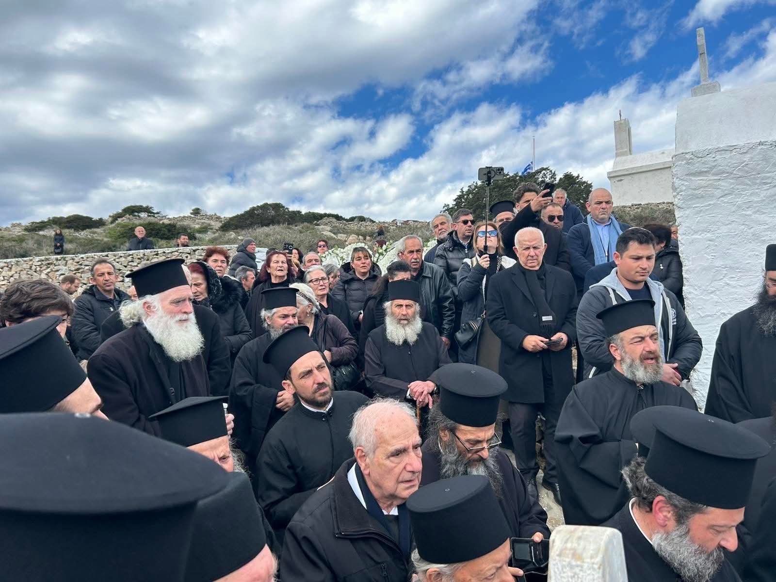Πλήθος πιστών από τα εννέα νησιά που διεποίμανε ο αοίδιμος Ιεράρχης, ο Θηραίος Βουλευτής Κυκλάδων κ. Μάρκος Καφούρος, τοπικές αρχές και κλήρος της Σαντορίνης, της Αμοργού, της Θηρασίας, της Ίου, της Ανάφης, της Σχοινούσας, της Δονούσας, της Ηρακλειάς και των Κουφονησίων ως και οι Αμοργίνοι Αιδεσιμολογιώτατος Πρωτοπρεσβύτερος κ. Θωμάς Συνοδινός και Πανοσιολογιώτατος Αρχιμανδρίτης κ. Επιφάνιος Αρβανίτης, Πρωτοσύγκελλος της Ιεράς Μητροπόλεως Νέας Ιωνίας, συνόδευσαν τον αείμνηστο Γέροντα Μητροπολίτη στο ύστατο ταξίδι του, τιμώντας την πολυετή διακονία του ως ιεροκήρυκος, ηγουμένου και μητροπολίτου.