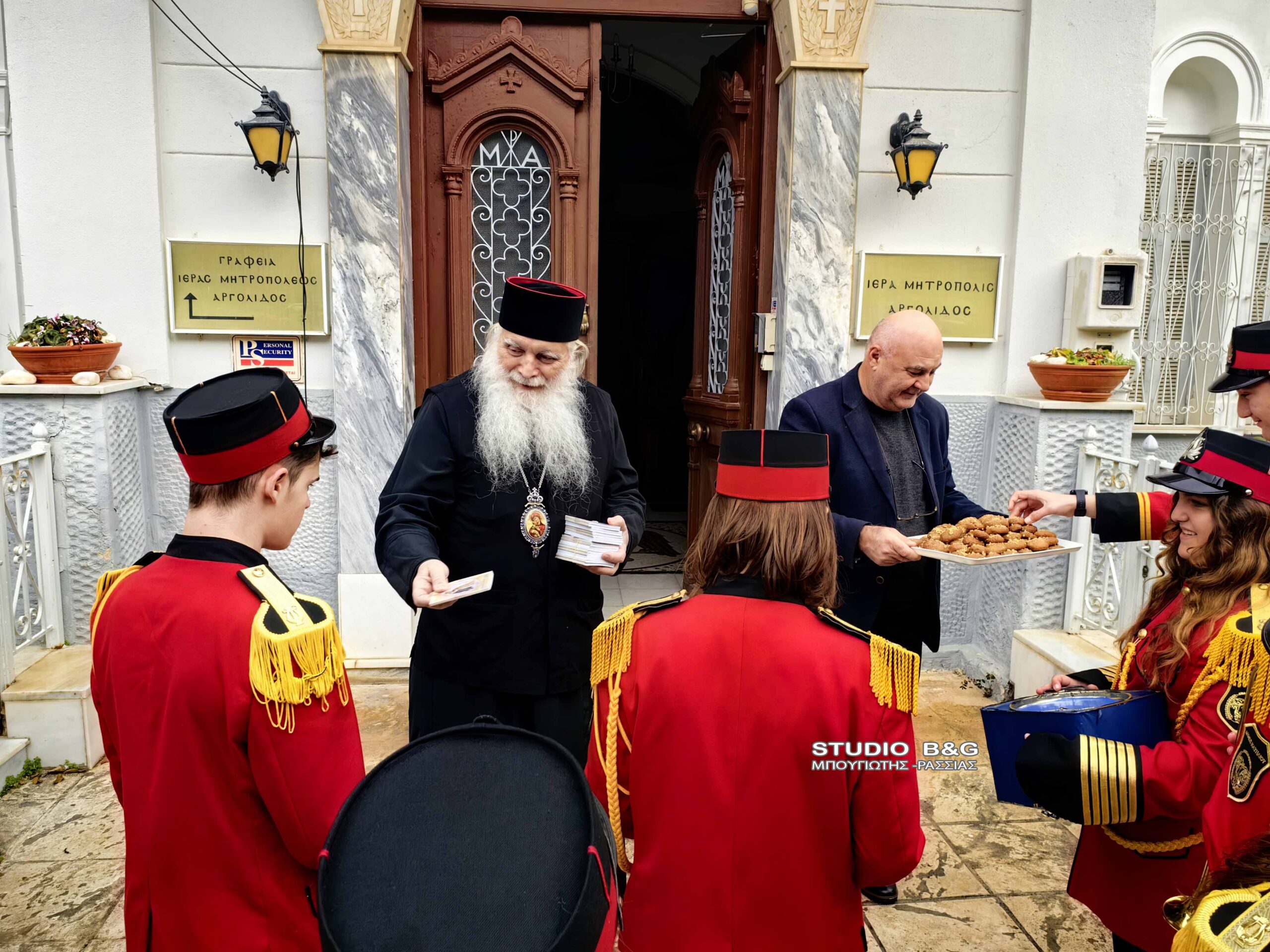 Παραδοσιακά κάλαντα άκουσε ο Μητροπολίτης Αργολίδας κ. Νεκτάριος από μέλη της Δημοτικής φιλαρμονικής Ναυπλίου καθώς και πολλά παιδιά από το Ναύπλιο, Τετάρτη 24 Δεκεμβρίου 2025. Μικρή και μεγάλοι επισκέφθηκαν τον Μητροπολίτη κ. Νεκτάριο στο Επισκοπείο του Ναυπλίου και του ευχήθηκαν τα χρόνια πολλά. Ο Σεβασμιώτατος κέρασε τα παιδιά μελομακάρονα και τους χάρισε από ένα ημερολόγιο ευχόμενος καλή πρόοδο και καλές γιορτές.