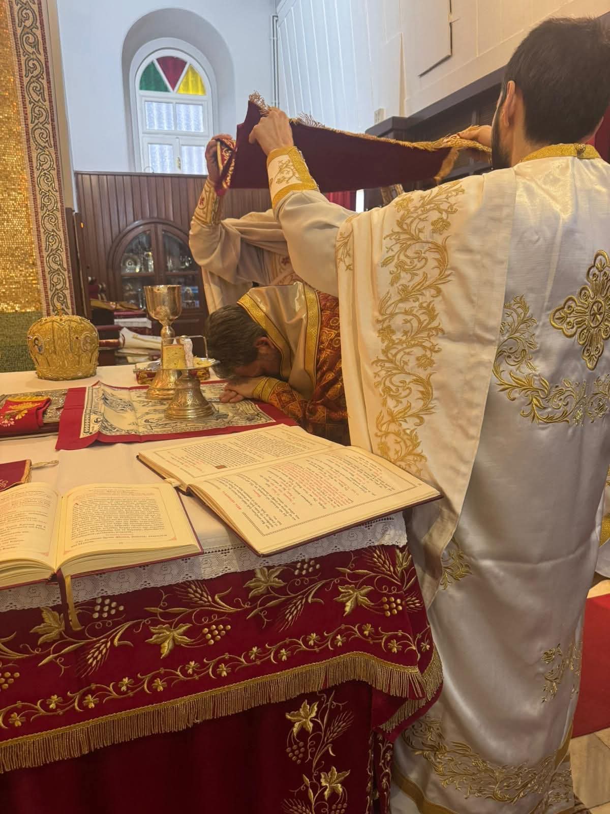 Την προτεραία, 24 Δεκεμβρίου, τελέστηκε στο ναΰδριο της Σχολής, κατά την τάξη, ο Όρθρος, οι Μ. Ώρες και ο Εσπερινός της εορτής μετά της Θείας Λειτουργίας του Αγίου Βασιλείου του Μεγάλου, προεξάρχοντος, ωσαύτως, του Καθηγουμένου.