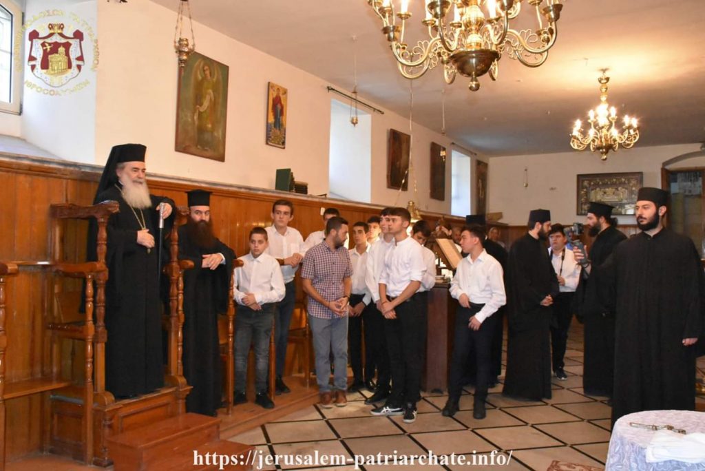 Τον αγιασμό για την νέα σχολική χρονιά τέλεσε στην Πατριαρχική σχολή της Αγίας Σιών ο Μακαριώτατος Πατριάρχης Ιεροσολύμων και πάσης Παλαιστίνης κ. Θεοφίλου Γ ‘, ευχόμενος στους μαθητές να έχουν μια καρποφόρα και μεστή απο θεολογικής πλευράς χρονιά.