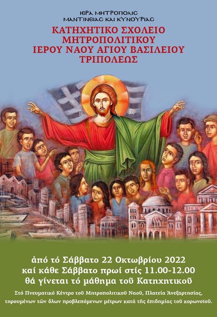 Μέ  τή Χάρη τοῦ Θεοῦ, τελέσθηκε τό Σάββατο 22  Ὀκτωβρίου 2022, ὁ Ἁγιασμός γιά τήν ἔναρξη τοῦ Κατηχητικοῦ Σχολείου τοῦ Μητροπολιτικοῦ Ἱεροῦ Ναοῦ τοῦ Ἁγίου Βασιλείου Τριπόλεως.