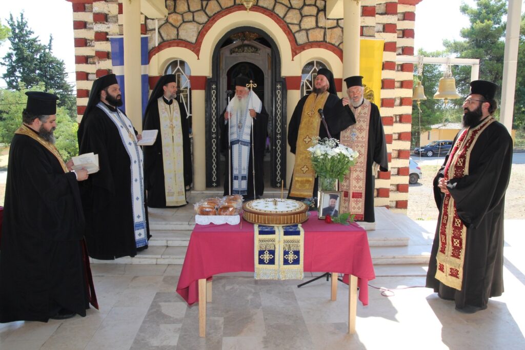 Στη συνέχεια στο Ιερό Παρεκκλήσιο της Αγίας Βαρβάρας, που βρίσκεται εντός του Στρατοπέδου, ο Σεβασμιώτατος τέλεσε Μνημόσυνο υπέρ αναπαύσεως της ψυχής του μακαριστού π. Κωνσταντίνου Νικολάου, ο οποίος για 40 χρόνια εξυπηρετούσε τις λειτουργικές ανάγκες του Κέντρου Εκπαίδευσης Πυροβολικού Θηβών, στο οποίο συμμετείχαν Ιερείς της Θήβας, η  Διοίκηση του Στρατοπέδου, ο Δήμαρχος Θηβαίων και η οικογένεια του μακαριστού π. Κωνσταντίνου.