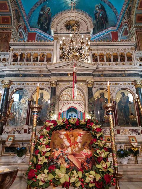 Στό τέλος τοῦ Ἑσπερινοῦ ὁ Θεοφιλέστατος εὐχήθηκε ἑορτίως καί διένειμε εἰς ἕνα ἔκαστον τό κατά παράδοσιν κόκκινο αὐγό ἀνταλλάσοντας τόν Ἀναστάσιμο χαιρετισμό “ΧΡΙΣΤΟΣ ΑΝΕΣΤΗ – ΑΛΗΘΩΣ ΑΝΕΣΤΗ”!