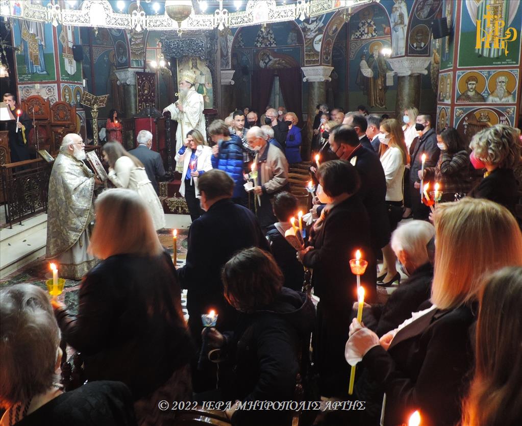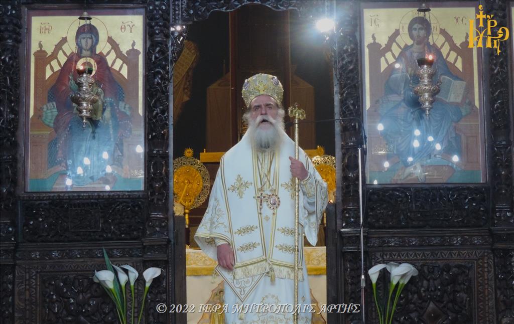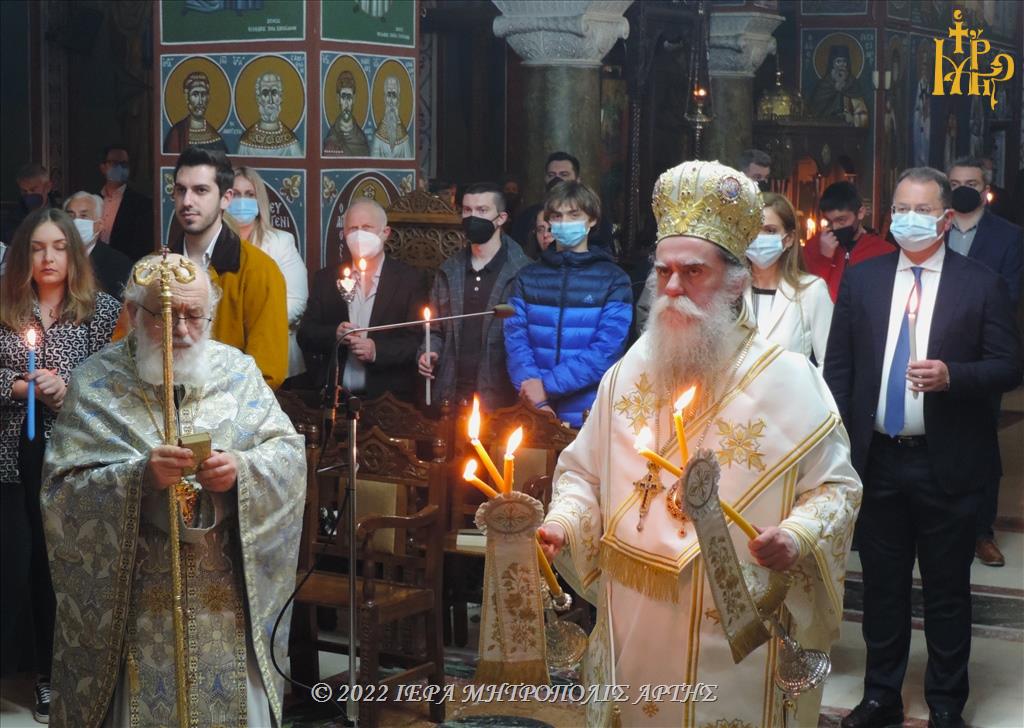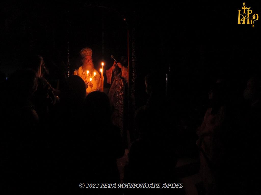 Το Μέγα Σάββατο, 23 Απριλίου 2022, το βράδυ, στον Μητροπολιτικό Ιερό Ναό του Αγίου Δημητρίου Άρτης, χοροστάτησε στον Όρθρο και ελειτούργησε ο Σεβασμιώτατος Μητροπολίτης Άρτης κ. Καλλίνικος.