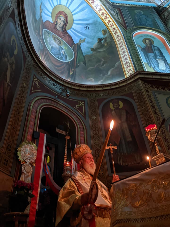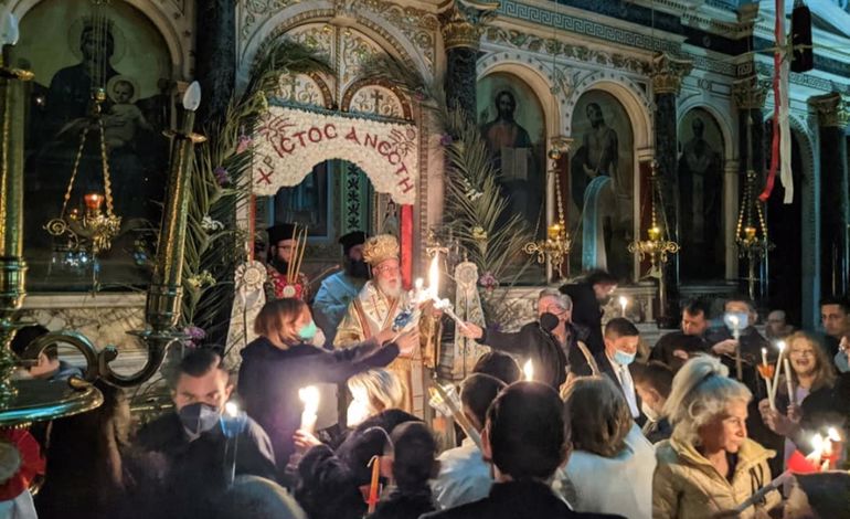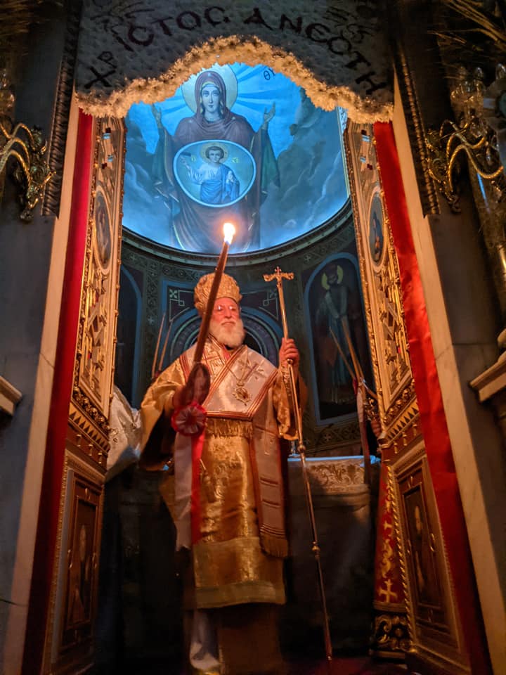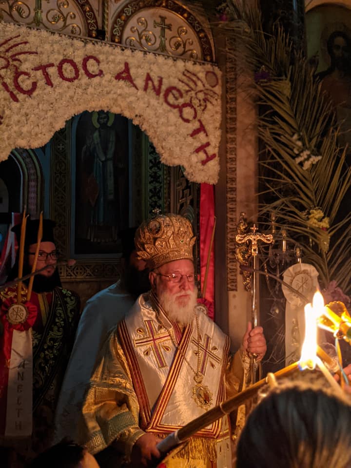 Μέ μεγαλοπρέπεια τελέσθηκε στήν Τρίπολη ἡ Ἀκολουθία τῆς Ἀναστάσεως στό Μητροπολιτικό Ἱερό Ναό Ἁγίου Βασιλείου. Στίς 11.00 τῆς νυκτός ἔγινε ἡ ὑποδοχή τοῦ ἁγίου Φωτός. Ἀκολούθως, ξεκίνησε ἡ λεγομένη Ἀκολουθία τῆς Παννυχίδος καί ἀνεγνώσθη ἡ Πασχαλινή Ἐγκύκλιος τοῦ Μητροπολίτου. Ὁ Σεβασμιώτατος Μητροπολίτης Μαντινείας καί Κυνουρίας κ.κ. Ἀλέξανδρος, μέ τό «Δεῦτε λάβετε φῶς», διένειμε τό ἅγιο Φῶς ἕως τό προαύλιο τοῦ Ναοῦ, ἀνέγνωσε τήν εὐαγγελική περικοπή καί ἔψαλε μετά δυνάμεως τόν ἀναστάσιμο παιᾶνα «Χριστός ἀνέστη». Νωρίτερα τό ἀπόγευμα ὁ Σεβασμιώτατος τέλεσε τήν Ἀναστάσιμη Ἀκολουθία στό Δεκαζειο Ἐκκλησιαστικό Γηροκομεῖο μαζί μέ τόν φιλοξενούμενο στό Ἵδρυμα Σεβασμιώτατο Μητροπολίτη Νεαπόλεως τοῦ Πατριαρχείου Ἱεροσολύμων κ.κ. Ἀμβρόσιο. Δόθηκε ἔτσι ἡ εὐκαιρία στούς γέροντές μας νά μετάσχουν στήν χαρά τῆς Ἀναστάσεως.Κατόπιν τελέσθηκε ὁ ὁ ἀναστάσιμος Ὄρθρος καί ἡ πασχαλινή Θεία Λειτουργία.