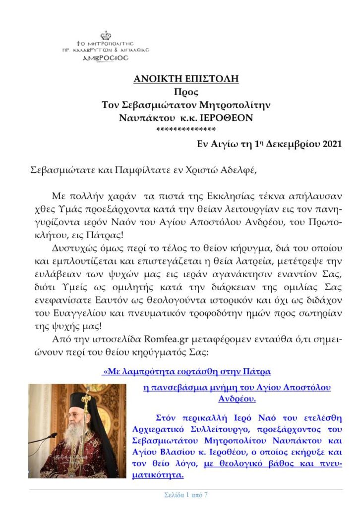 Εκκλησία της Ελλάδος Ανοιχτή επιστολή προς τον Μητροπολίτη Ναύπακτου 1 min read About The Author MARTYRIA.GR See author's posts Continue Reading Previous Στο νοσοκομείο ο Mητροπολίτης Αιτωλίας και ΑκαρνανίαςNext Ἑσπερινός μνήμης Ἁγίας Βαρβάρας στήν Τρίπολη Διαβάστε επίσης 1 min read Εκκλησία της Ελλάδος Η προσφυγούπολη Ερμούπολη υπεδέχθη την πρόσφυγα ιερά και θαυματουργή εικόνα της Παναγίας «Ατταλειωτίσσης» 1 min read Εκκλησία της Ελλάδος “Λαμπρά Πανήγυρις της Πολιούχου του Αιγίου Ζωοδόχου Πηγής – Παναγίας Τρυπητής” 1 min read Εκκλησία της Ελλάδος Εγκύκλιος Σεβ. Μητροπολίτου Μάνης κ. Χρυσοστόμου Γ’ περί της χαράς των χριστιανών