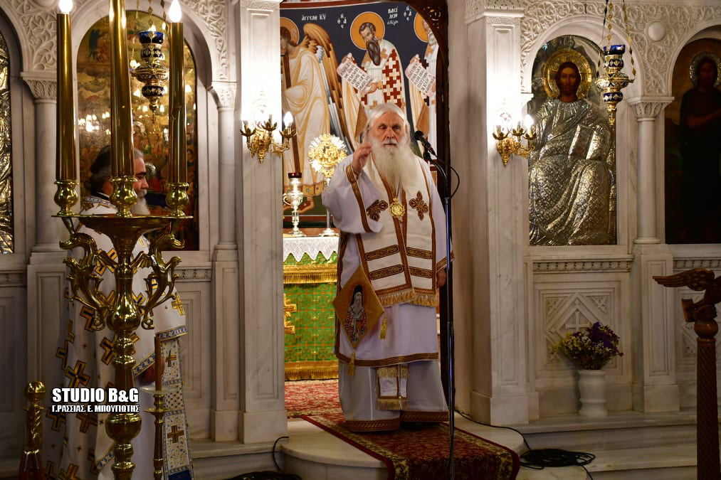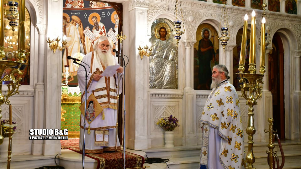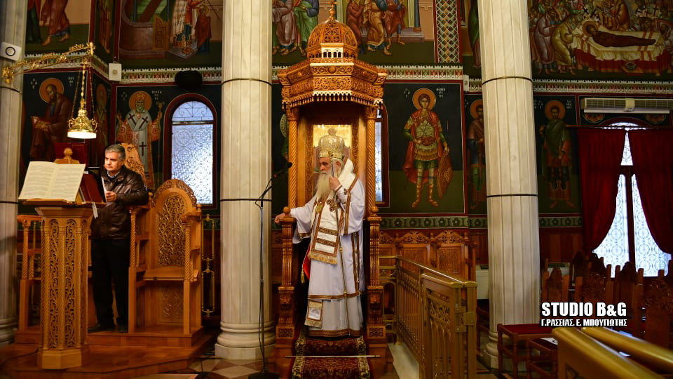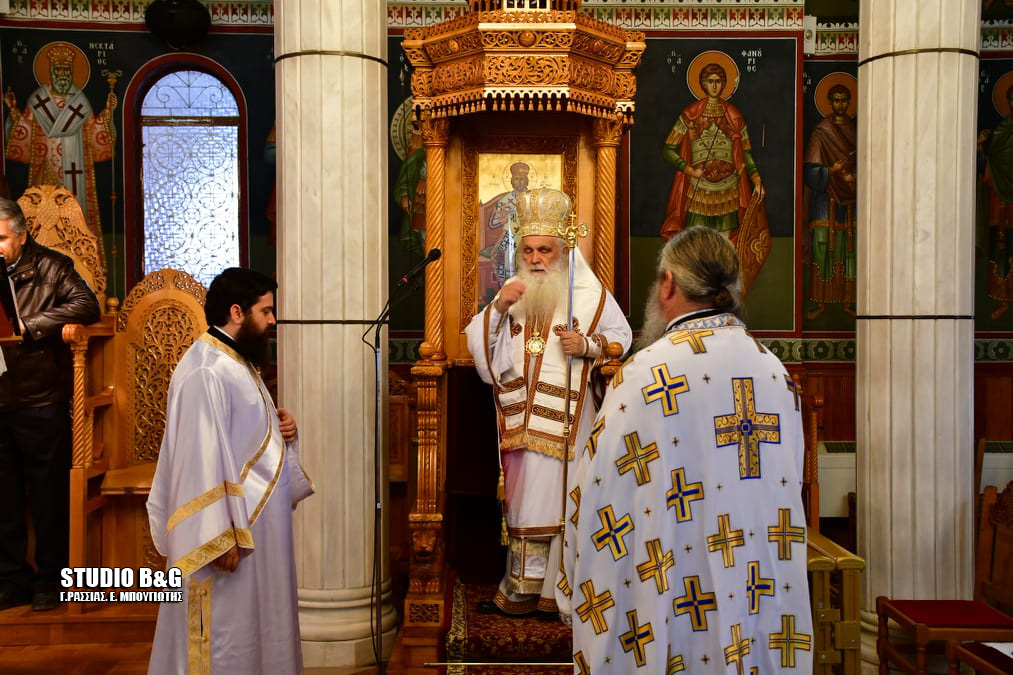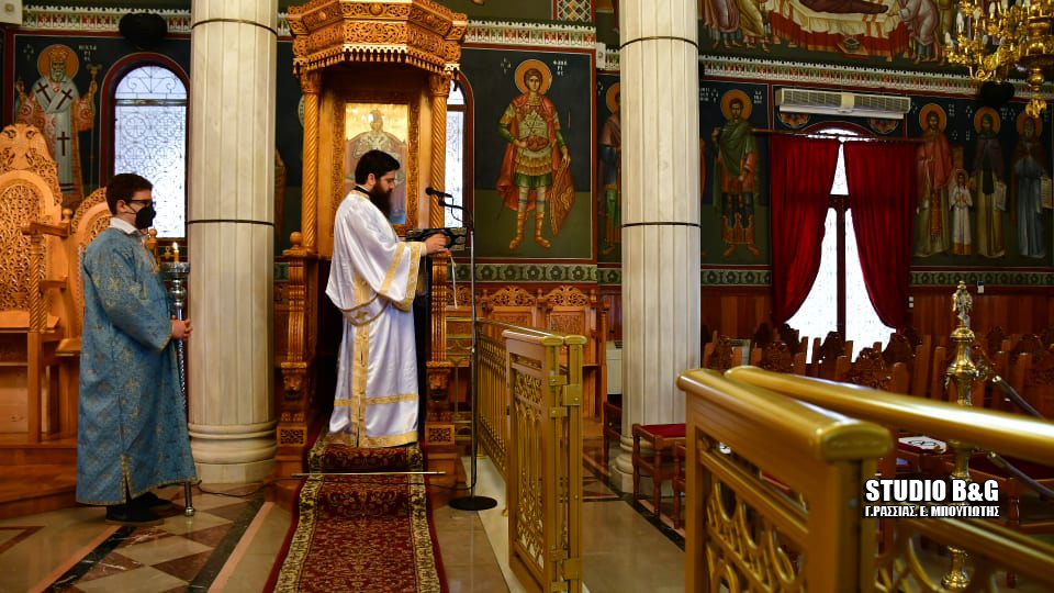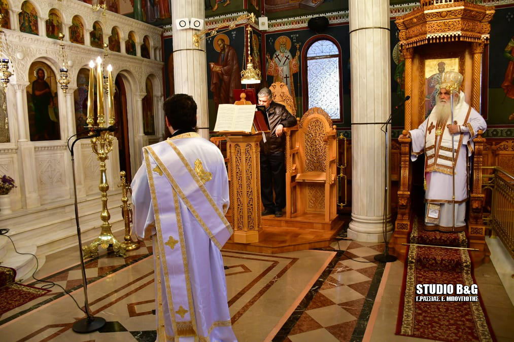 Η Θεία Λειτουργία τελέσθηκε από τον Μητροπολίτη Αργολίδας Νεκτάριο σε μια εντελώς άδεια από κόσμο εκκλησία, λόγω των εκτάκτων μέτρων για την αποφυγή διάδοσης του κορονοϊού. Στην θεία λειτουργία συμμετείχε ο εφημέριος του ναού πρωτοπρεσβύτερος π. Ελευθέριος Μίχος κι ο διάκονος π/ Νικόλαος Μίχος.
