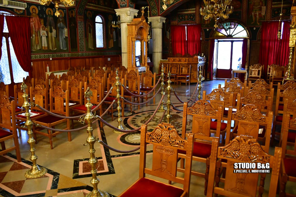 Κεκλεισμένων των θυρών πραγματοποιήθηκε η Αρχιερατική Θεία Λειτουργία στον Ιερό Ναό Ευαγγελίστριας Ναυπλίου λόγω των μέτρων της πολιτείας για τον κορονοϊο, Κυριακή 22 Νοεμβρίου 2020.