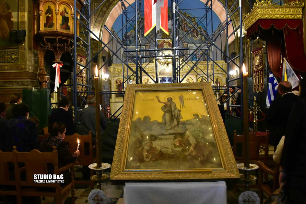 Την παραμονή του Αγίου Γεωργίου 24 Απριλίου στον εορτάζοντα Μητροπολιτικό ναό στο Ναύπλιο, τελέστηκε αρχιερατικός εσπερινός χοροστατούντος του Μητροπολίτη Αργολίδας Νεκταρίου.Κατά τον εσπερινό έψαλε ο πρωτοψάλτης του ναού Δημήτριος Καρκαλάτος και ο Λαμπαδάριος κ. Γκολέμης.
