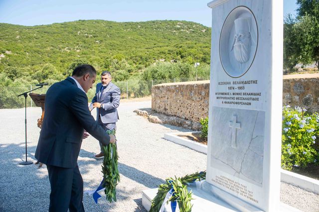 Με το Αρχιερατικό Συλλείτουργο, στην Ιστορική Ιερά Μονή Βελανιδιάς, της Ιεράς Μητροπόλεως Μεσσηνίας, περατώθηκε το διήμερο εκδηλώσεων τιμής και μνήμης του Μακαριστού Μητροπολίτου Θεσσαλιώτιδος και Φαναριοφερσάλων Ιεζεκιήλ Στρούμπου του καλουμένου και “Βελανιδιώτου” ο οποίος γεννήθηκε στην Καλαμάτα και χρημάτισε Ηγούμενος της Ιεράς Μονής. Το πρωί τελέσθηκε ο Όρθρος χοροστατούντος του Σεβασμιωτάτου Μητροπολίτου Σταγών και Μετεώρων κ. Θεοκλήτου και εν συνεχεία τελέσθηκε το Αρχιερατικό Συλλείτουργο προεξάρχοντος του Σεβασμιωτάτου Μητροπολίτου Θεσσαλιώτιδος και Φαναριοφερσάλων κ. Τιμοθέου και συλλειτουργούντων των Σεβ. Μητροπολιτών Σταγών και Μετεώρων κ. Θεοκλήτου και Μεσσηνίας κ. Χρυσοστόμου. Κηρύττοντας τον Θείο Λόγο ο Σεβ. Θεσσαλιώτιδος δανειζόμενος την Ευαγγελική περικοπή τόνισε πως ο αείμνηστος Ιεζεκιήλ ήταν ο καλός εργάτης του Αμπελώνος του Κυρίου και ευχαρίστησε τον Μητροπολίτη Μεσσηνίας κ. Χρυσόστομο για την πρωτοβουλία της διοργάνωσης του αφιερωματικού διημέρου. Εν συνεχεία τελέσθηκε το μνημόσυνο του μακαριστού Μητροπολίτου Ιεζεκιήλ και μετά το πέρας της Θείας Λειτουργίας άπαντες πορεύθηκαν στον αύλειο χώρο της Μονής και έλαβαν χώρα τα αποκαλυπτήρια της επιτύμβιας στήλης με ενσωματωμένη την μαρμάρινη πλάκα που είχε ετοιμάσει ο ίδιος ο Ιεζεκιήλ όταν ήταν Ηγούμενος της Ιεράς Μονής και κατέθεσαν στεφάνια ο Σεβ. Μητροπολίτης Θεσσαλιώτιδος, ο Δήμαρχος Καλαμάτας κ. Αθανάσιος Βασιλόπουλος και ο Αρχιμ. Χριστοφόρος Νταμάτης εκ μέρους της Διαχειριστικής Επιτροπής της Μονής. Κλείνοντας την σεμνή τελετή ο οικείος Ποιμενάρχης Μητροπολίτης Μεσσηνίας κ. Χρυσόστομος ευχαρίστησε τους παρισταμένους Αρχιερείς και ιδιαιτέρως τον Πρόεδρο της Διαχειριστικής Επιτροπής της Μονής Αρχιμ. Χριστοφόρο Νταμάτη για όλα όσα προσφέρει στην ανακαίνιση και λειτουργία της Ιεράς Μονής.