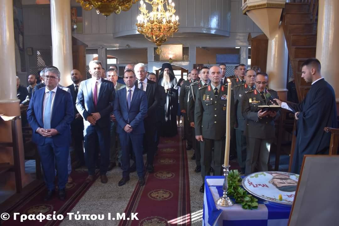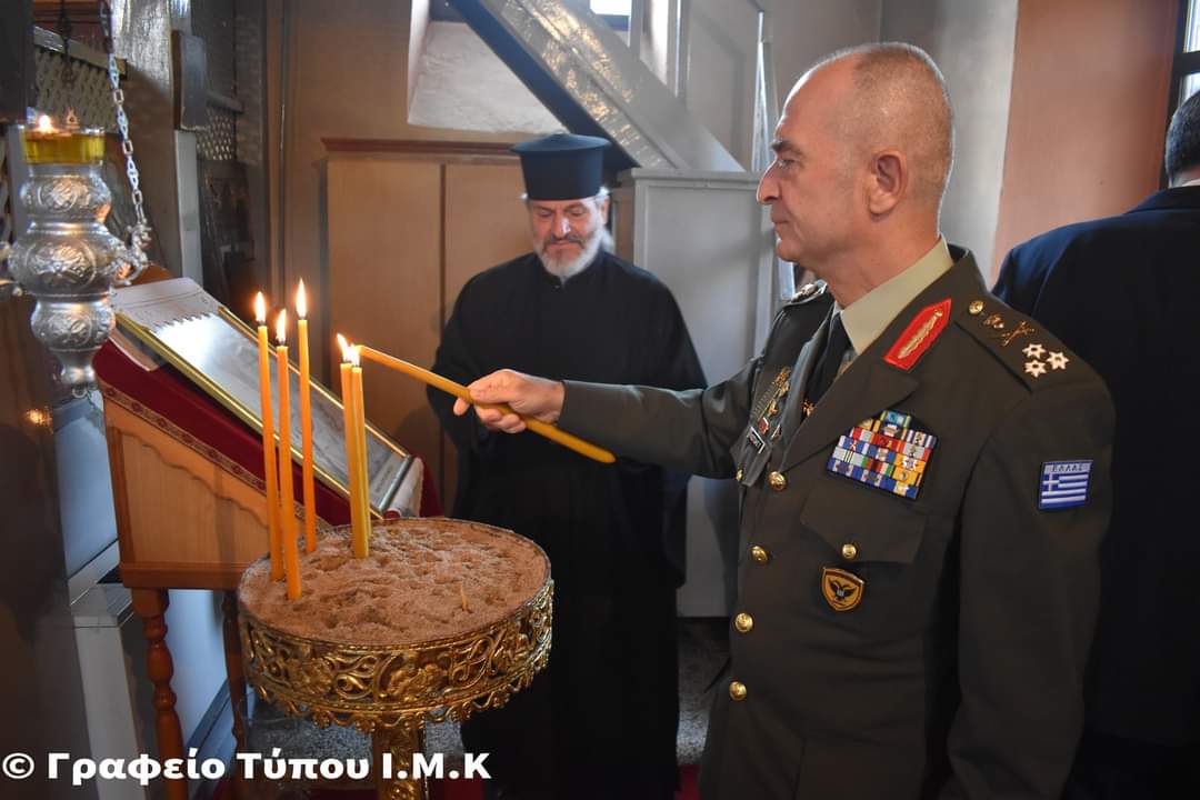 Κατὰ τὴν θεία Λειτουργία ἐκκλησιάσθηκε ὁ ἐνδοξότατος Ἀρχηγὸς τοῦ Γενικοῦ Ἐπιτελείου τοῦ Στρατοῦ Ἀντιστράτηγος Γεώργιος Κωστίδης, ὁποῖος καὶ ἀνέγνωσε τὸ «Πιστεύω», συνοδευόμενος ἀπὸ τὸν Διοικητὴ τοῦ Γ’ Σώματος Στρατοῦ Γ’ Σ.Σ. NRDC-GR Ἀντιστράτηγο κ. Ἀθανάσιο Γαρίνη, ὁ ὁποῖος ἀνέγνωσε τὸ «Πάτερ ἡμῶν», καὶ νέους-νέες Εὐέλπιδες.