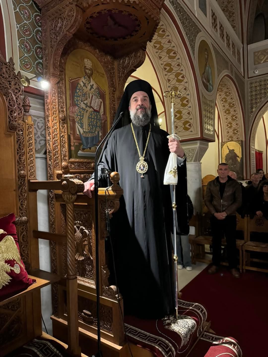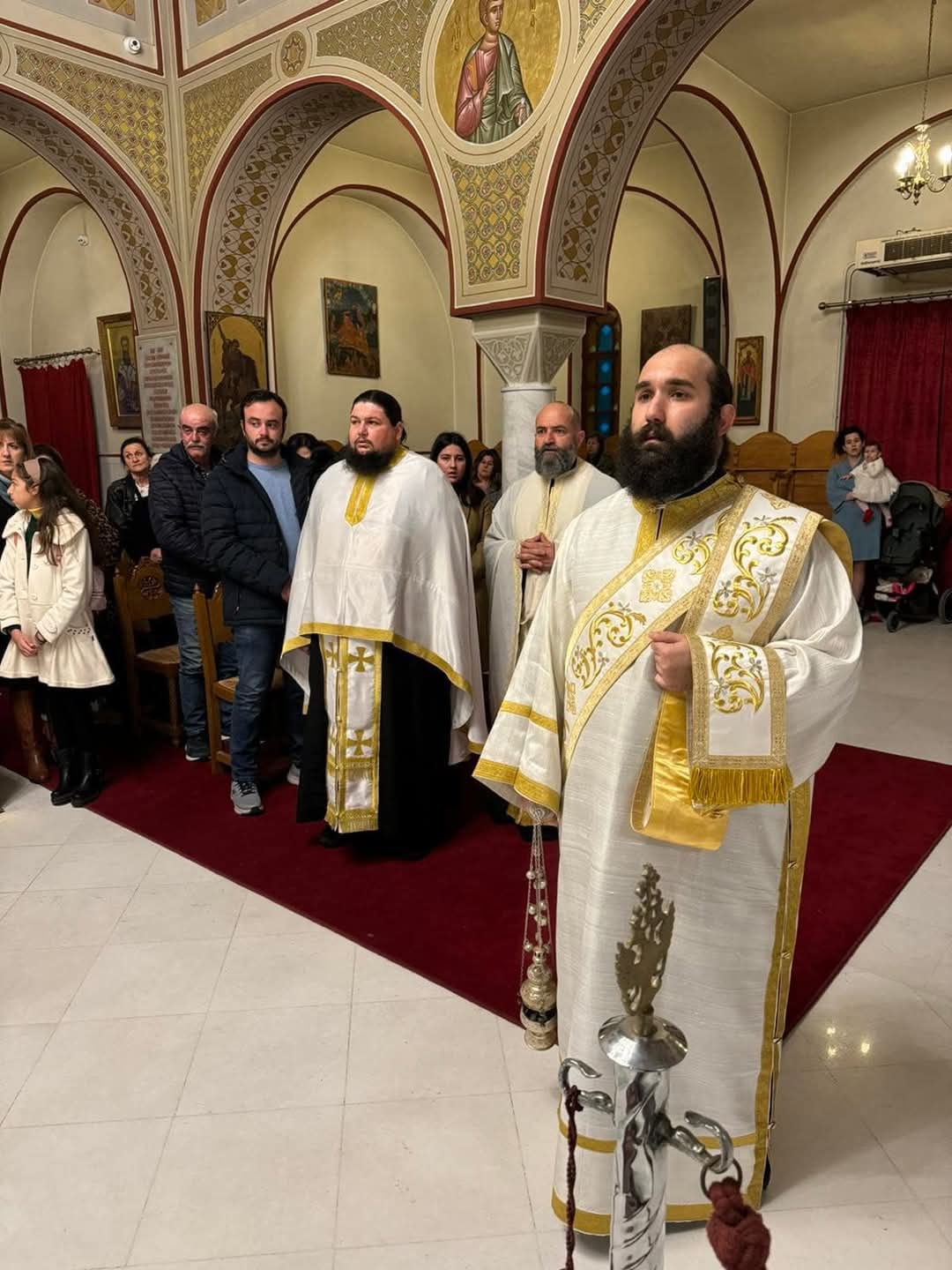 Στην ακολουθία έψαλλε η βυζαντινή χορωδία της Ιεράς Μητροπόλεως υπό τη διεύθυνση του πρωτοψάλτου του Μητροπολιτικού Ναού κ Νικολάου Βαρβαρήγου.