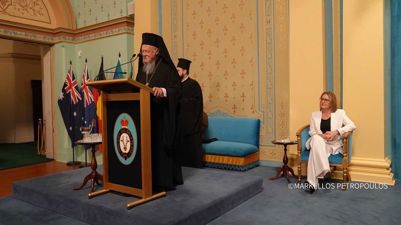 Τον Οικουμενικό Πατριάρχη καλωσόρισαν με θερμούς λόγους η Κυβερνήτρια και η Πρωθυπουργός της Βικτώριας, ενώ ο Παναγιώτατος τούς απηύθυνε εγκάρδιες ευχαριστίες για τη φιλοξενία και την παράθεση της τιμητικής προς το πρόσωπό του Δεξιώσεως. Στο επίκεντρο της Πατριαρχικής ομιλίας ετέθη ο ρόλος της Εκκλησίας στη σύγχρονη κοινωνία. «Μερικοί άνθρωποι πιστεύουν ότι η θρησκεία πρέπει να παραμείνει ιδιωτική, μακριά από τη δημόσια ζωή», παρατήρησε ο Πατριάρχης, για να αντιτείνει με έμφαση: «Η Εκκλησία έχει ηθική υποχρέωση να μιλάει για ζητήματα που διαμορφώνουν τον κόσμο μας – ιδιαίτερα εκείνα που επηρεάζουν την ανθρώπινη αξιοπρέπεια και δικαιοσύνη».