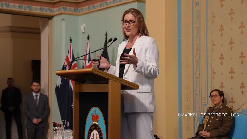 Ακολούθως, σε αίθουσα του Κυβερνείου, παρατέθηκε επίσημη Δεξίωση από την Κυβερνήτρια κ. Gardner, από κοινού με την Πολιτειακή Πρωθυπουργό κ. Jacinta Allan. Στη Δεξίωση παρέστησαν τα μέλη της Πατριαρχικής συνοδείας: οι Σεβασμιώτατοι Μητροπολίτες Ίμβρου και Τενέδου κ. Κύριλλος και Θεσσαλονίκης κ. Φιλόθεος, οι Πανοσιολ. Μέγας Πρωτοσύγκελλος κ. Γρηγόριος, και Μέγας Εκκλησιάρχης κ. Αέτιος, Διευθυντής του Ιδιαιτέρου Πατριαρχικού Γραφείου, ο Ιερολ. Πατριαρχικός Διάκονος κ. Ευλόγιος, Κωδικογραφεύων της Αγίας και Ιεράς Συνόδου, η Οσιωτ. Μοναχή Ιακώβη, Ηγουμένη του Ιερού Ησυχαστηρίου του Τιμίου Προδρόμου Ακριτοχωρίου, οι Εντιμολ. Άρχων Διδάσκαλος του Γένους κ. Κωνσταντίνος Δεληκωσταντής, Διευθυντής του Α´ Πατριαρχικού Γραφείου, και Άρχων Διδάσκαλος της Εκκλησίας κ. Θεόδωρος Γιάγκου, Καθηγητής της Θεολογικής Σχολής του Αριστοτελείου Πανεπιστημίου Θεσσαλονίκης, οι Εντιμ. κ. Νικόλαος – Γεώργιος Παπαχρήστου, Διευθυντής του Πατριαρχικού Γραφείου Τύπου και Επικοινωνίας, κ. Θεμιστοκλής Καρανικόλας, εκ του προσωπικού του Πατριαρχείου, καθώς επίσης οι Σεβασμιώτατοι Μητροπολίτες Δέρβης κ. Ιεζεκιήλ και Σεβαστείας κ. Σεραφείμ, οι Θεοφιλέστατοι Επίσκοποι της Ιεράς Αρχιεπισκοπής Αυστραλίας, εκπρόσωποι άλλων Χριστιανικών Εκκλησιών, ο Πρέσβης της Ελλάδος στην Αυστραλία κ. Σταύρος Βενιζέλος, ο Ύπατος Αρμοστής της Κυπριακής Δημοκρατίας κ. Αντώνιος Σαμμούτης, οι Γενικοί Πρόξενοι της Ελλάδος στη Μελβούρνη κ. Εμμανουήλ Κακαβελάκης και στην Αδελαΐδα κ. Αλεξάνδρα Θεοδωροπούλου, Άρχοντες της Μ.τ.Χ.Ε., εκπρόσωποι του πολιτικού κόσμου σε ομοσπονδιακό και πολιτειακό επίπεδο, και εκπρόσωποι Οργανισμών και Οργανώσεων της Ελληνικής Ομογένειας.