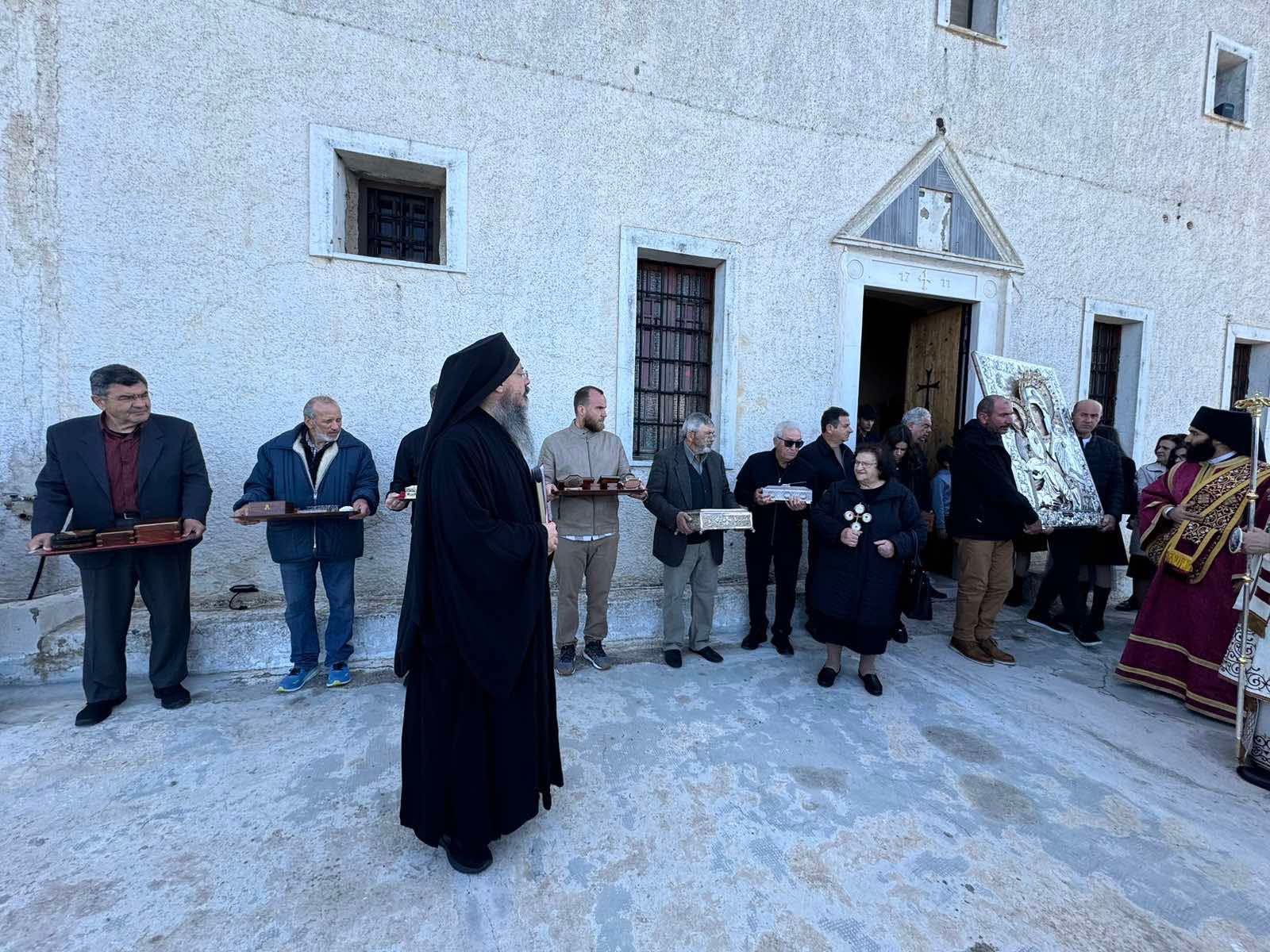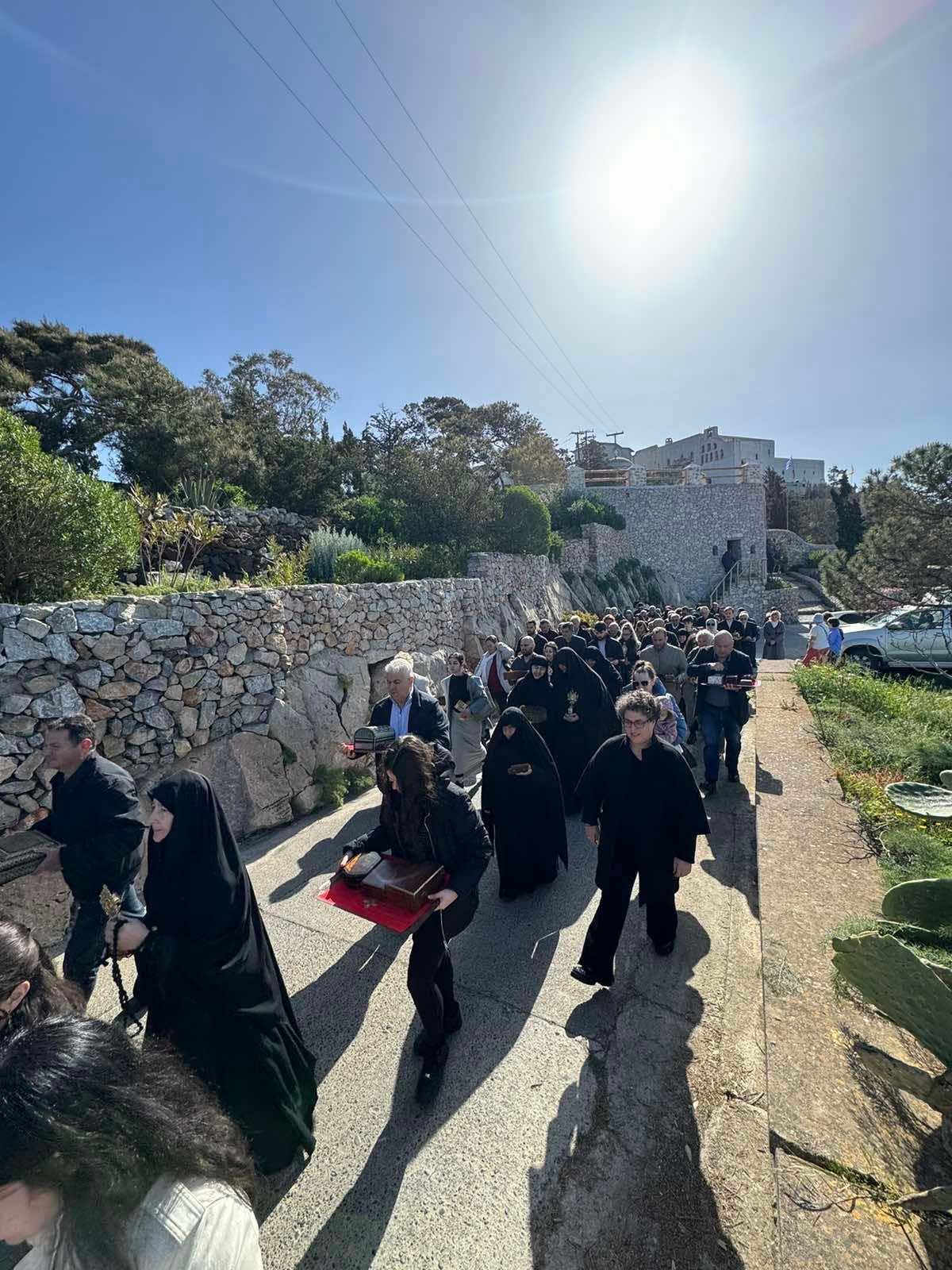 Μετά το πέρας της Θείας Λειτουργίας ακολούθησε, κατά το μοναστηριακό έθος, η λιτανευτική περιφορά των ιερών λειψάνων και της εφεστίου εικόνος της Υπεραγίας Θεοτόκου πέριξ της Ιεράς Μονής.