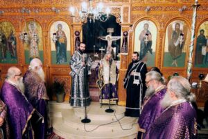 Στον Μέγα Πανηγυρικό Εσπερινό χοροστάτησε ο Σεβ. Μητροπολίτης Δημητριάδος κ. Ιγνάτιος, παρουσία πλειάδος Κληρικών και μεγάλου πλήθους πιστών. Τον Θείο Λόγο Κήρυξε ο Πρωτ. Θεμιστοκλής Μουρτζανός, Γενικός Αρχιερατικός Επίτροπος της Ιεράς Μητροπόλεως Κερκύρας, Παξών & Διαποντίων Νήσων. Αμέσως μετά, στο Πν. Κέντρο του Ναού, ο Σεβασμιώτατος ευλόγησε την Βασιλόπιτα της Ενορίας.