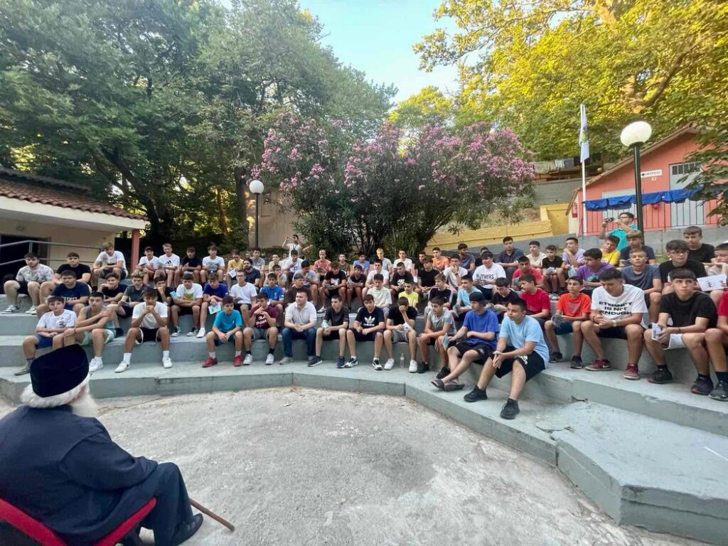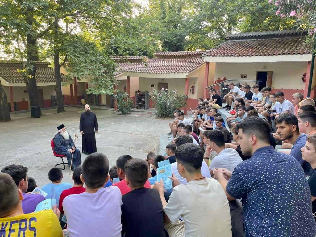 Ο κ. Ιγνάτιος μίλησε πατρικά στους κατασκηνωτές και τόνισε ότι: «ο Θεός μας έπλασε ελεύθερους, μας έδωσε αυτό το μεγάλο δώρο, μας έδωσε ένα κομμάτι από Αυτόν, γιατί ο Θεός είναι η Ελευθερία! Τίποτα δεν Τον δεσμεύει. Μας έδωσε την ελευθερία και μας είπε -Ορίστε, εγώ σας έδωσα με αγάπη αυτό που είμαι! Πάρτε αυτήν την ελευθερία και ελάτε να Μου μοιάσετε! Ελάτε να κοινωνήσετε μαζί Μου. Αλλά η ελευθερία δίνει τη δυνατότητα και να μη μοιάσουμε στον Θεό. Κι εμείς οι άνθρωποι -δυστυχώς- δεν κάνουμε πάντοτε καλή χρήση της ελευθερίας. Καμιά φορά έχουμε μια μανία να κατακτήσουμε πράγματα, ακόμη και ανθρώπους και να κάνουμε τα πάντα δικά μας, ενώ είμαστε απλά διαχειριστές… επιδιώκουμε να γίνουμε κατακτητές και άπληστοι, που σημαίνει να μη χορταίνεις με τίποτα! Και έτσι, καταστρέφουμε το περιβάλλον, δημιουργούμε προϋποθέσεις για να υπάρχουν εχθρότητες και ζούμε πλέον σε μια εποχή όπου φαίνεται ότι έχουμε βλάψει αρκετά το περιβάλλον σε βαθμό που πλέον να ζούμε έκτακτες καταστάσεις. Όλα αυτά έχουν να κάνουν και με την πνευματικότητά μας. Τι πρέπει να είμαστε τελικά; Τι θέλει ο Θεός εδώ στην κατασκήνωση; Η προσπάθειά σας είναι να γίνετε χρηστοί, δηλαδή χρήσιμοι, δηλαδή να κοινωνήσουμε τον Χριστό, Αυτόν ο οποίος από Θεός έγινε άνθρωπος για να μας πει: – Ξέρεις; Μπορείς μαζί Μου να κάνεις αυτό που φαίνεται αδύνατο! Αυτό λέει η Εκκλησία μας! Και όποιος το αποφασίσει, μπορεί να γίνει ένας από αυτούς τους Αγίους! Τους προστάτες τοπικούς Αγίους που έχουν οι ομάδες σας. Οι άγιοι αυτοί, έζησαν εδώ, στον τόπο αυτό, με πιο δύσκολες συνθήκες, με διωγμούς, με σκλαβιά, όμως πήραν μέσα τους τον Χριστό! Τον κάνανε τρόπο ζωής και μαρτύρησαν! Δεν θα γίνουμε όλοι μάρτυρες! Αλλά μπορείτε να γίνετε χρηστοί. Μπορείτε να γίνετε εικόνες Θεού ζωντανές! Μπορείτε να κρατήσετε μια ελπίδα για το μέλλον αυτού του τόπου. Είστε το μέλλον! Και όσοι είναι κοντά σας, ο π.Καλλίνικος, οι άνθρωποι που έρχονται ως στελέχη, ένα πράγμα κάνουν και αυτοί. Αυτό που πήραν οι ίδιοι, όταν ήταν στη δική σας θέση, να το μεταδίδουν και στους άλλους. Τους ευχαριστώ από την καρδιά μου, γιατί χωρίς αυτούς δεν θα ήσασταν εδώ. Θα ήσασταν κάτω στο καμίνι της πόλης, στην αγωνία… εδώ τουλάχιστον μπορείτε να απολαύσετε την ομορφιά της φύσης και να ανακάλυψε την ομορφιά της ψυχής σας. Να μάθετε ο ένας από τον άλλον και κυρίως από αυτούς που προσπαθούν να σας δώσουν κάτι. Ο καθένας θα πάρει, αυτό που έχει ανάγκη. Ανάλογα με τη διάθεση που έχει. Όμως ξέρω πως για να είστε εδώ, κάνατε ένα βήμα. Δεν το κάνουν όλοι. Εσείς όμως το κάνατε. Και οι γονείς που σας εμπιστεύτηκαν, τους συγχαίρω. Θα χαρώ περισσότερο, εάν κάποια στιγμή, όταν με βρείτε κάπου, έρθετε και μου πείτε, ξέρετε; ήμουν ένα από τα παιδιά στην κατασκήνωση και εγώ! Από αυτήν την κατασκήνωση ωφελήθηκα! Κρατάω μέσα μου κάτι! Κρατάω το προσευχητάρι. Κρατάω το τραγούδι, τον άγιο που γνώρισα, μια φιλία που έκανα με κάποιον ή μια ωραία μνήμη που με βοηθάει στις δύσκολες στιγμές».