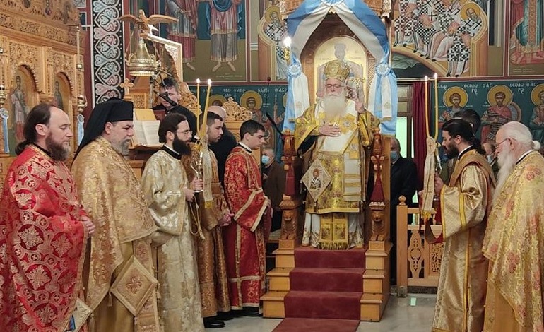 Ανήμερα της εορτής ο Σεβασμιώτατος λειτούργησε στον ίδιο Ναό. Στο κήρυγμά του μίλησε για την Παραβολή του Μεγάλου Δείπνου, «που συνιστά πρόσκληση για την συμμετοχή μας στο Δείπνο της Ευχαριστίας. Όμως, ο Διάβολος κάνει τα πάντα για να μας κρατήσει μακριά από το Μυστήριο. Μας γεμίζει φόβους, δικαιολογίες και ενοχές, με αποτέλεσμα, ενώ είμαστε όλοι προσκεκλημένοι, ελάχιστοι φθάνουμε στην Τράπεζα της Σωτηρίας. Γι’ αυτό, ας ετοιμαστούμε, και ενόψει των Χριστουγέννων, όχι με τον τρόπο που μας υποδεικνύει ο κόσμος, αλλά ουσιαστικά, πνευματικά, προσευχητικά και με καρδιά αγαπώσα για κάθε άνθρωπο που έχει την ανάγκη μας».