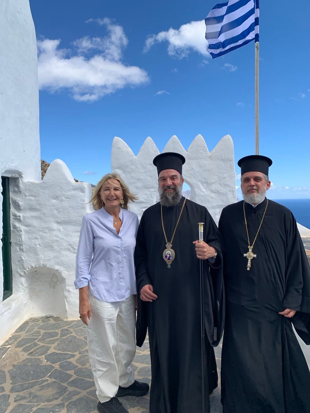 Ως ευλογία και ανάμνηση της επισκέψεως, ο Σεβασμιώτατος προσέφερε στον Πρωθυπουργό και στους συνοδούς Υπουργούς ακριβές αντίγραφο της ιεράς εικόνος της Κυρίας Χοζοβιωτίσσης, ευχόμενος πατρικώς κάθε ενίσχυση από Θεού στο έργο της διακονίας τους προς τον λαό και, τέλος, πριν την αναχώρησή του για τη Σαντορίνη, επισκέφθηκε τον προκάτοχό του, Γέροντα Μητροπολίτη πρ. Θήρας κ. Επιφάνιο, αποδίδοντάς του την οφειλόμενη τιμή και αγάπη.