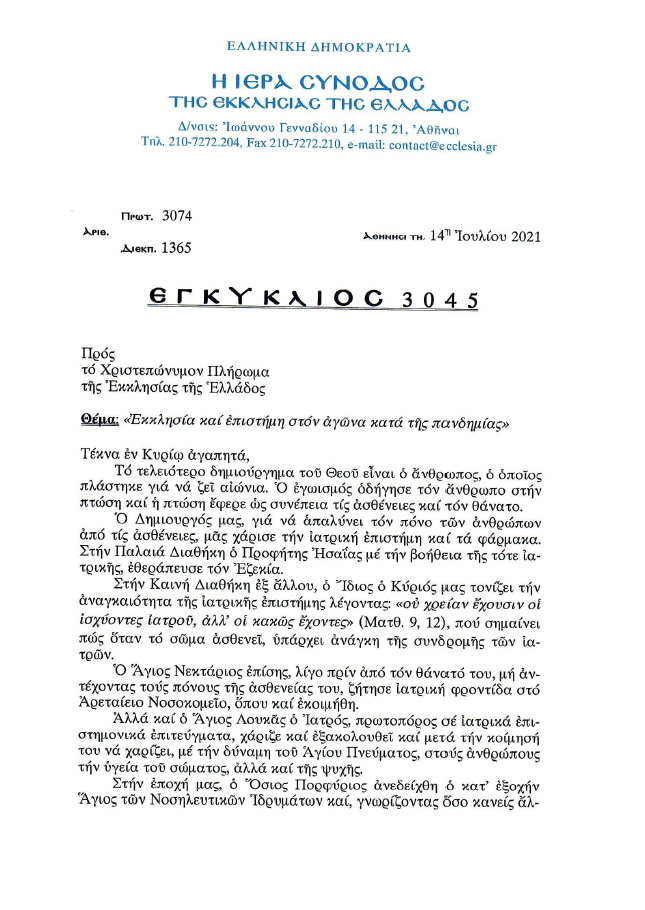 Εκκλησία της Ελλάδος Εκκλησία και Επιστήμη κατά της πανδημίας 1 min read About The Author MARTYRIA.GR See author's posts Continue Reading Previous Στον πανηγυρίζοντα Ιερό Ναό του Αγίου Φωτίου Βεργίνης ο Μητροπολίτης ΒεροίαςNext Η πίστη είναι υπόθεση καρδιάς Διαβάστε επίσης 1 min read Εκκλησία της Ελλάδος Η προσφυγούπολη Ερμούπολη υπεδέχθη την πρόσφυγα ιερά και θαυματουργή εικόνα της Παναγίας «Ατταλειωτίσσης» 1 min read Εκκλησία της Ελλάδος “Λαμπρά Πανήγυρις της Πολιούχου του Αιγίου Ζωοδόχου Πηγής – Παναγίας Τρυπητής” 1 min read Εκκλησία της Ελλάδος Εγκύκλιος Σεβ. Μητροπολίτου Μάνης κ. Χρυσοστόμου Γ’ περί της χαράς των χριστιανών
