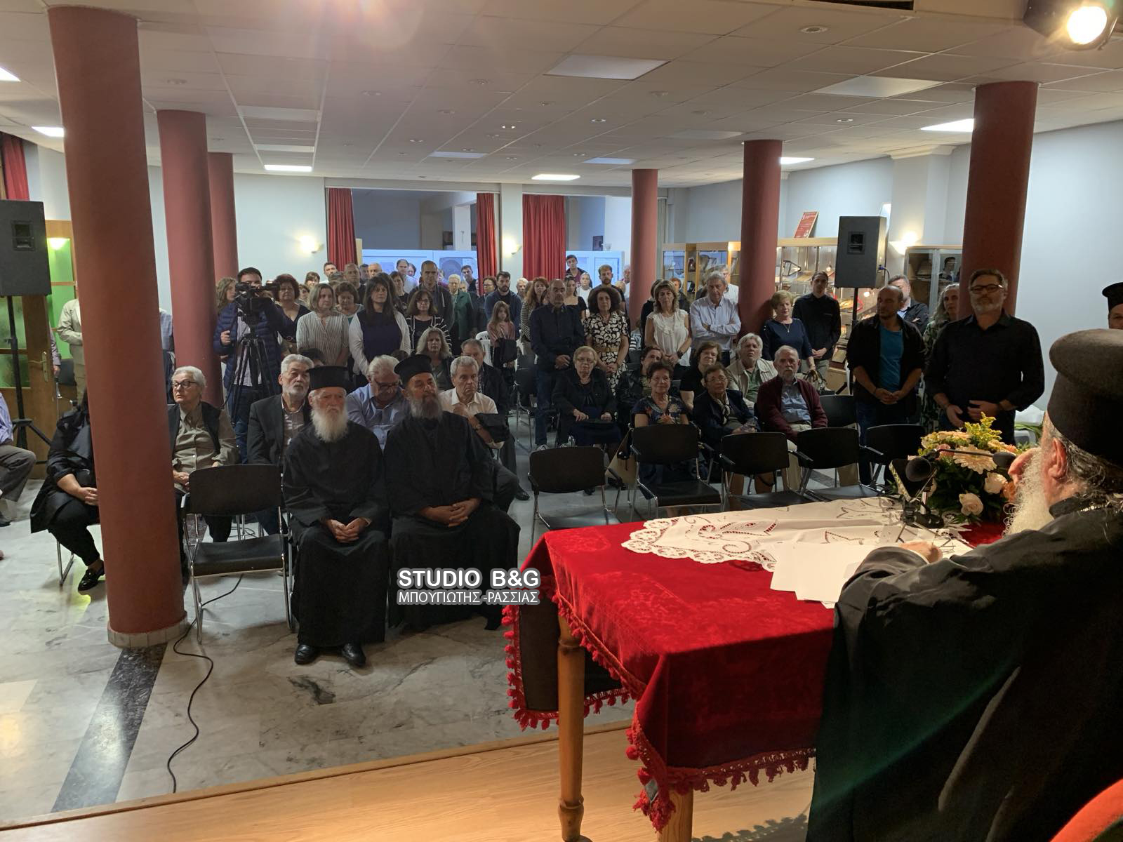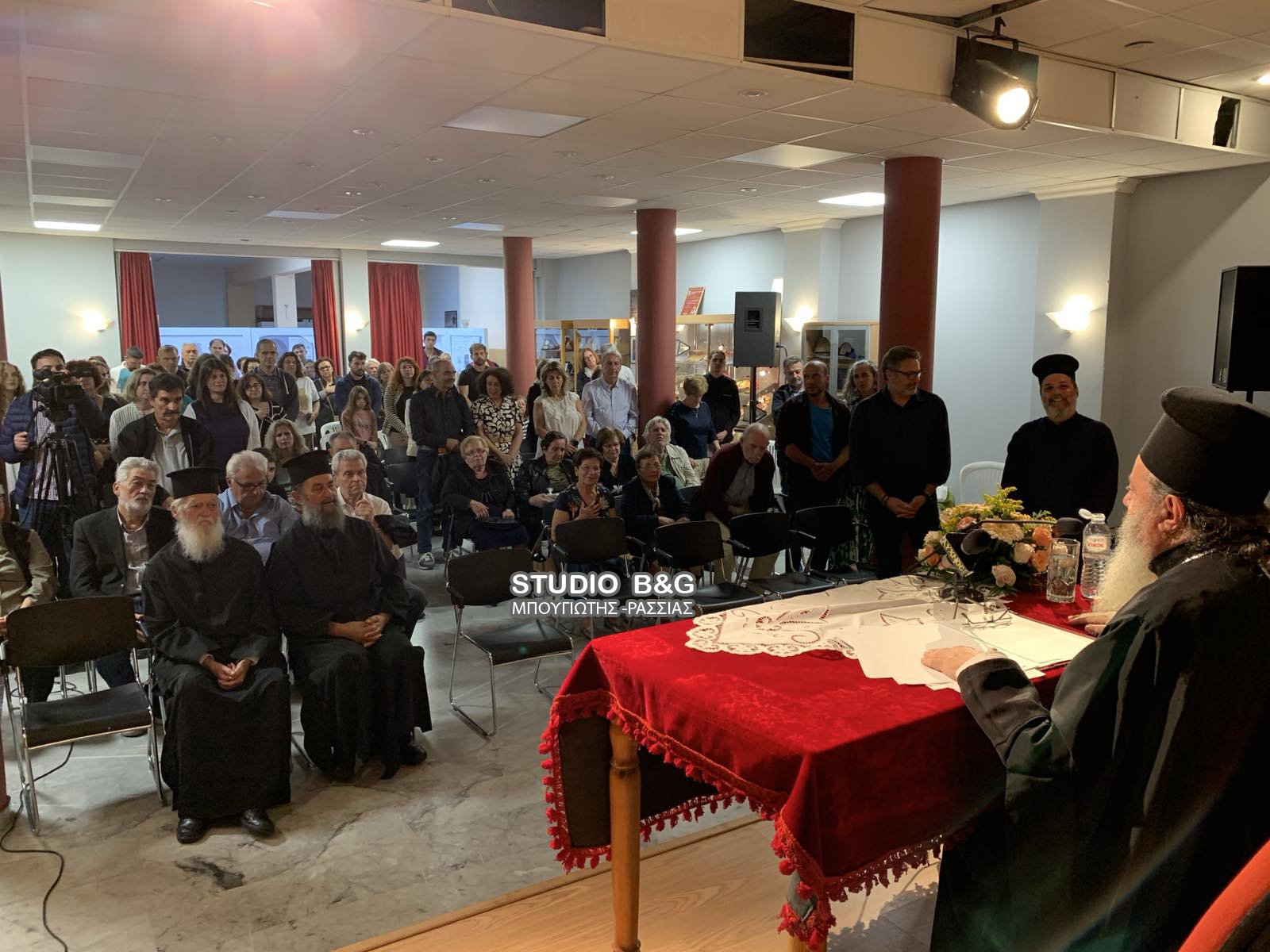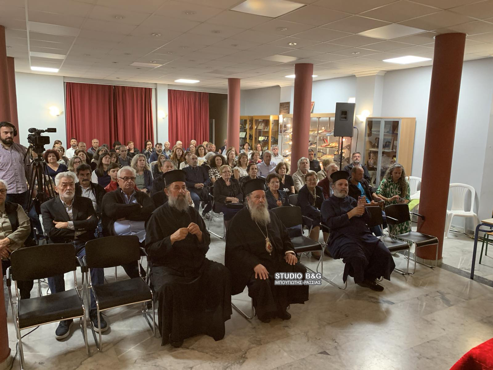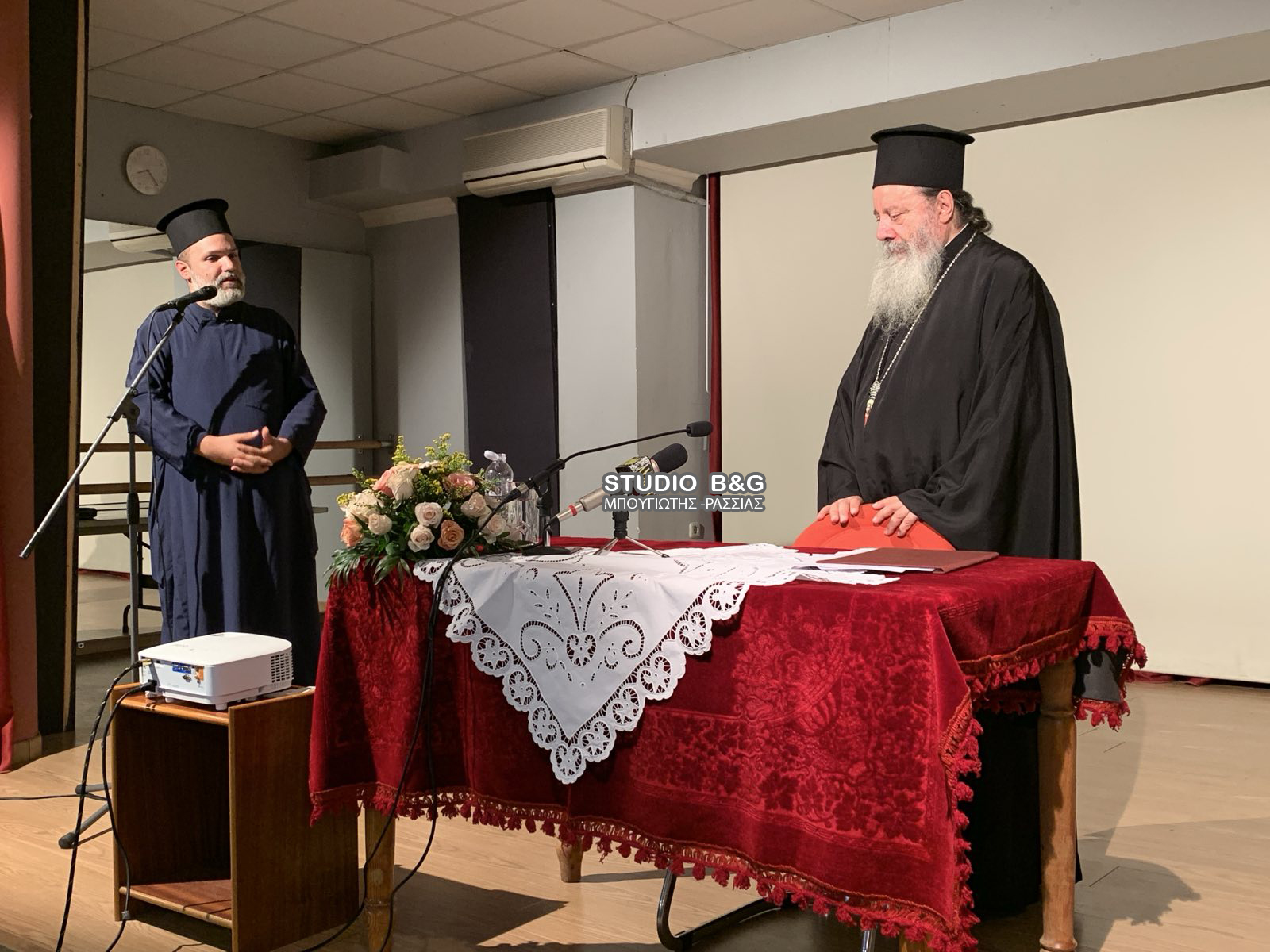 Πριν την ομιλία του Επισκόπου, προβλήθηκαν εικόνες για τον Άγιο Γεράσιμο και ακούστηκαν τροπάρια του Αγίου από την εξαιρετική φωνή της Νεφέλης Σούρσου.