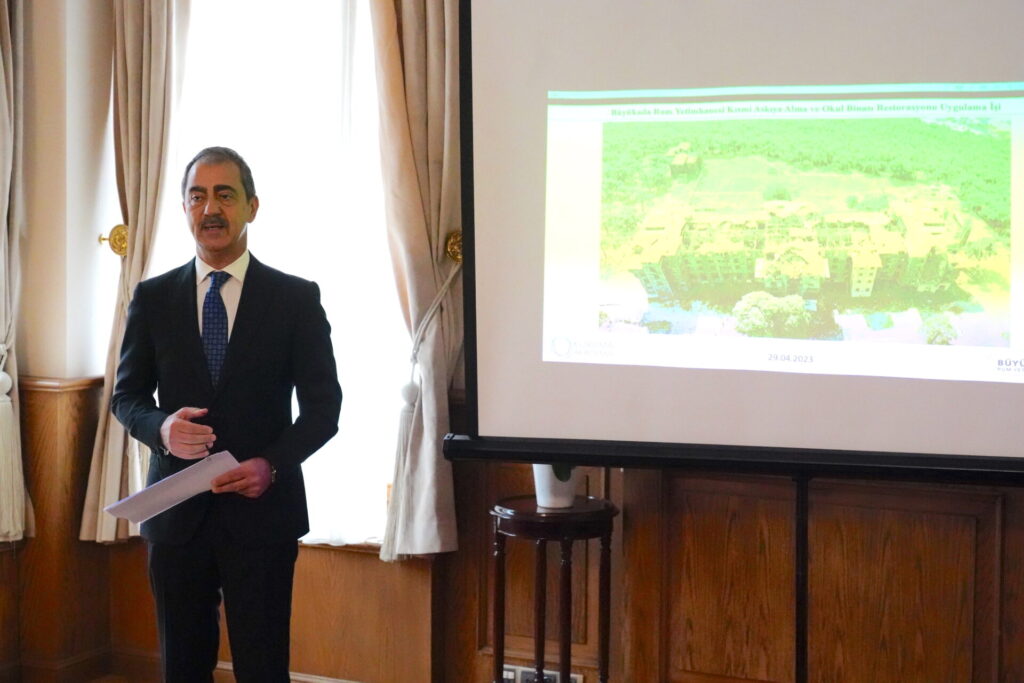 Στη συνέχεια ο Εντιμολ. κ. Βίγκας παρουσίασε το χρονοδιάγραμμα και τη μεθοδολογία των εργασιών, που θα πραγματοποιηθούν στο αμέσως επόμενο διάστημα στο ξύλινο συγκρότημα, και στη συνέχεια μίλησαν η αρχιτέκτονας Ευγεν. κ. Rabia Şengün, η οποία παρουσίασε τα στάδια και τα αποτελέσματα του διαγωνισμού, και ο Καθηγητής Ελλογιμ. κ. Oğuz Ceylan, εκ μέρους της επιστημονικής επιτροπής, ο οποίος αναφέρθηκε στην πορεία των εργασιών.
